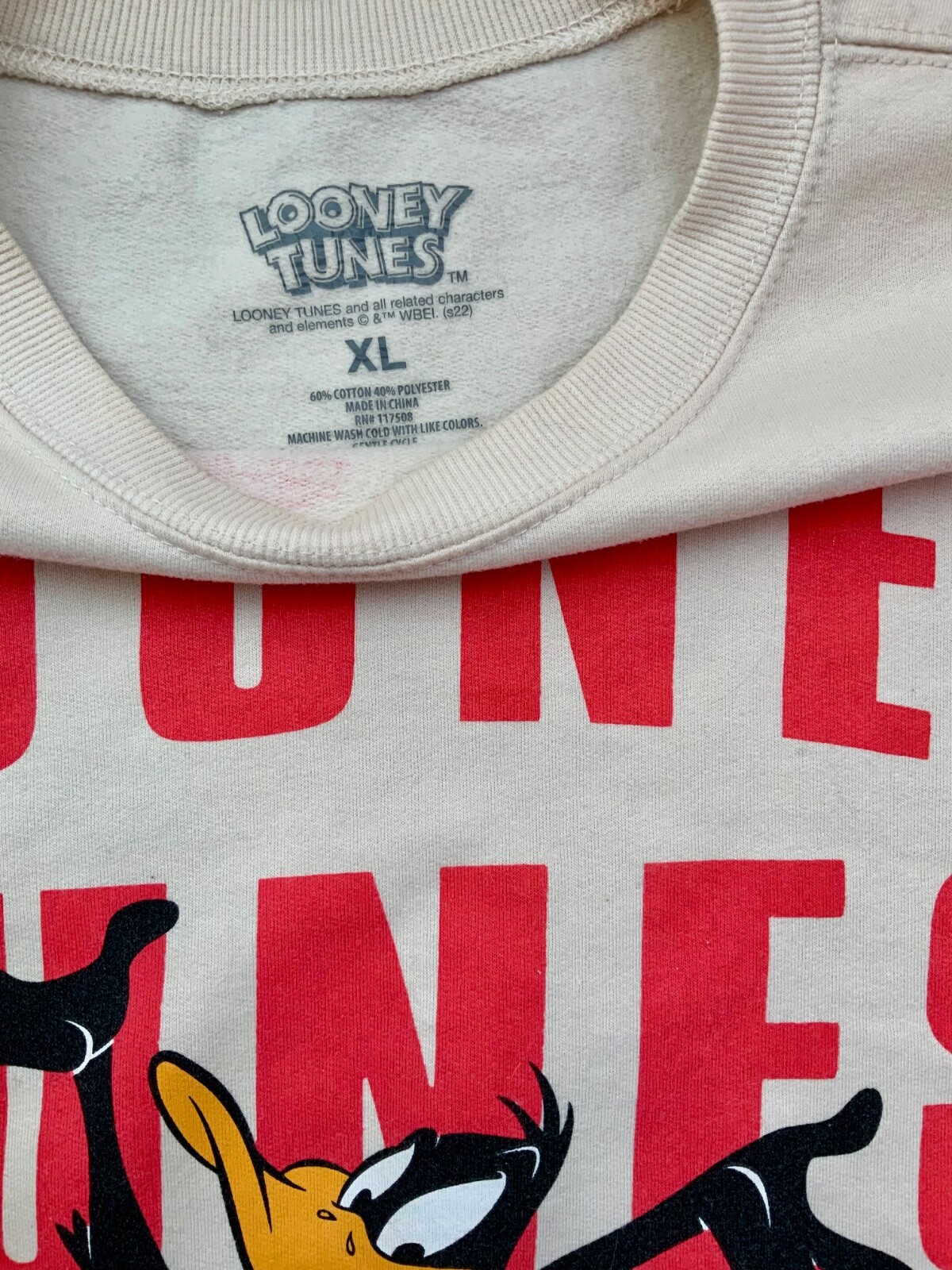 как выглядит Looney Tunes Sweatshirt Ladies XL Beige Tweety Bugs Bunny Daffy Duck Porky Tas фото