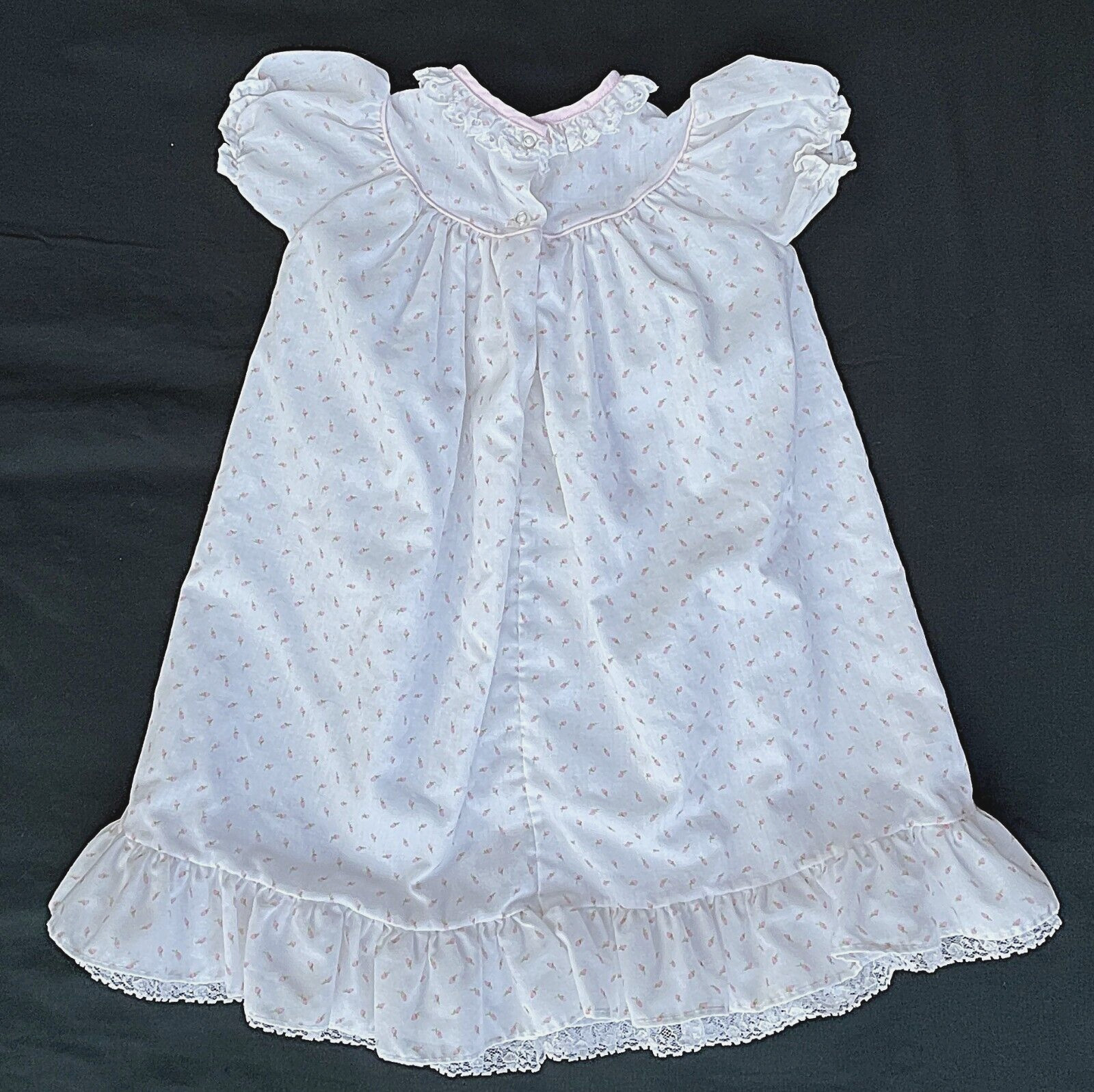 ALEXIS Vintage Pink Rosebud Short Sleeve Lined Long Gown Baby Girls 3-6 Months