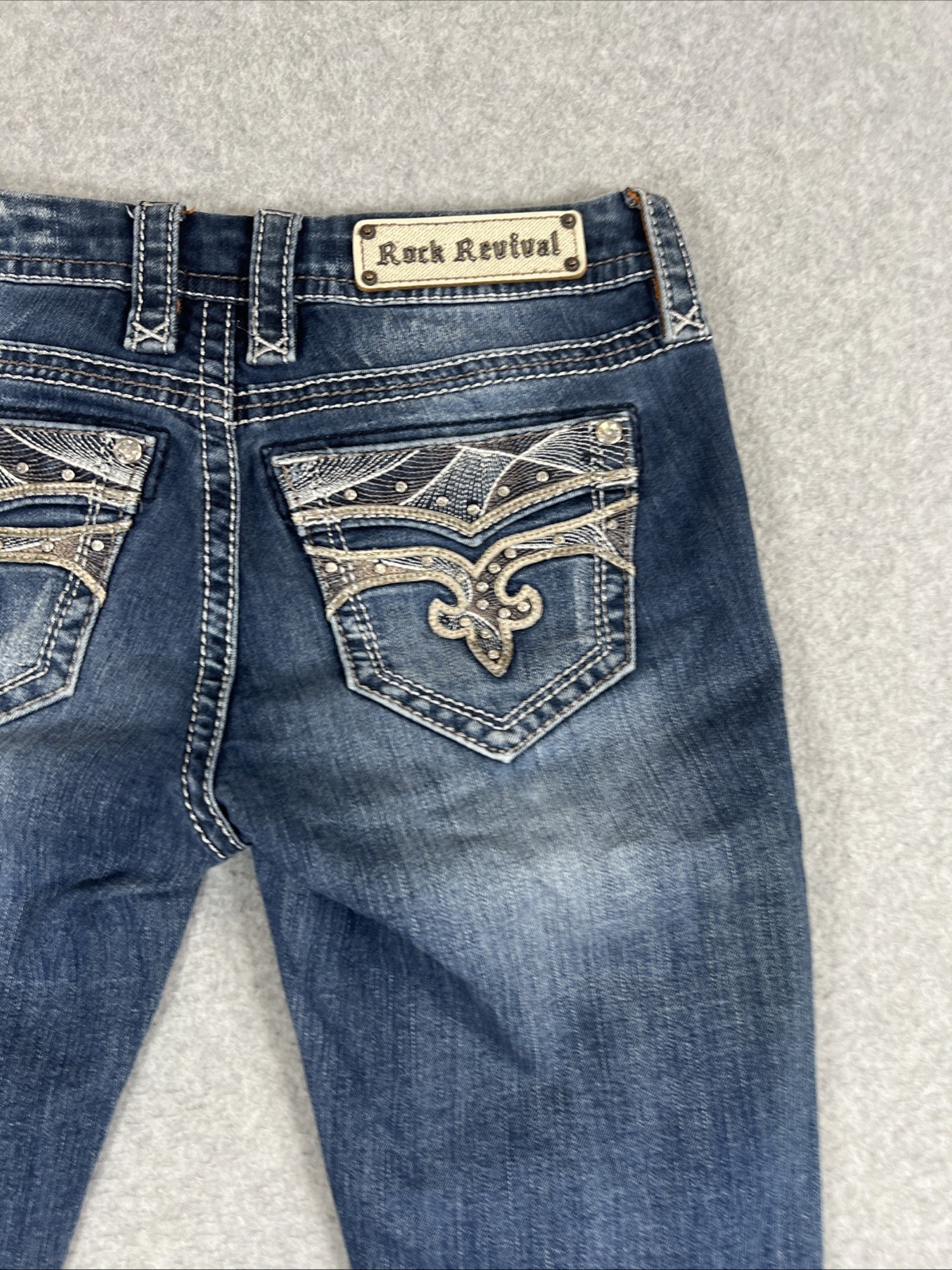 как выглядит Rock Revival Sapphire Boot Jeans Jewel Pockets Womens Size 27 30x30.5 фото