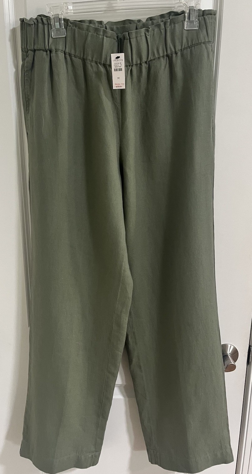 NWT Talbots Nantucket Pull On Wide Leg 100 Linen Pants Size Medium Green