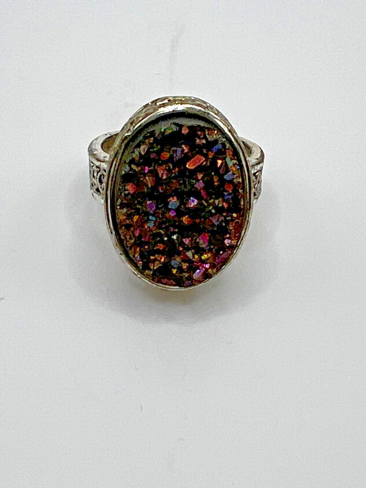 Vintage Smoky Purple Druzy Gemstone 925 Sterling Silver Ring Size 8
