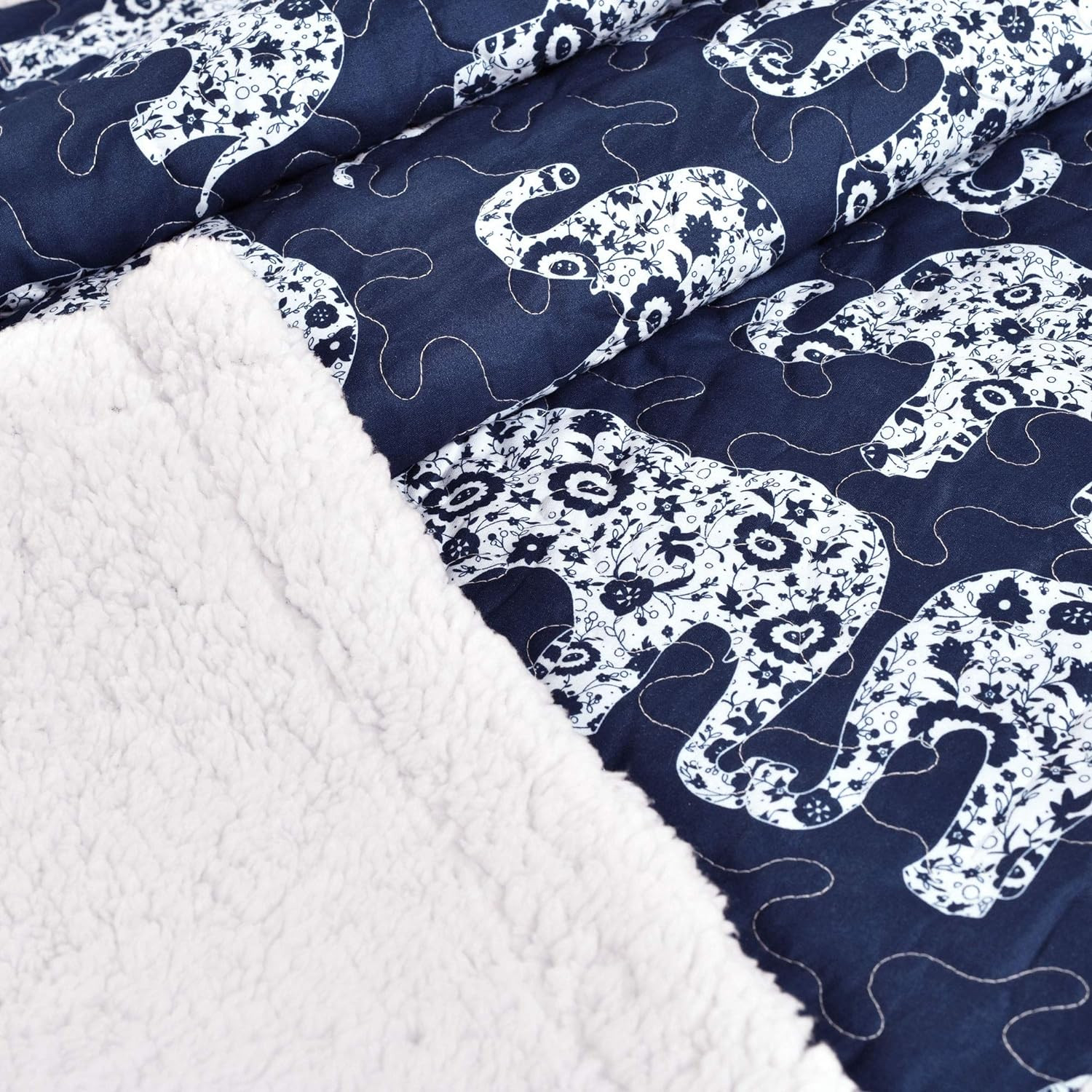 как выглядит Navy Elephant Parade Throw Fuzzy Reversible Sherpa Blanket 60 X 50 White фото