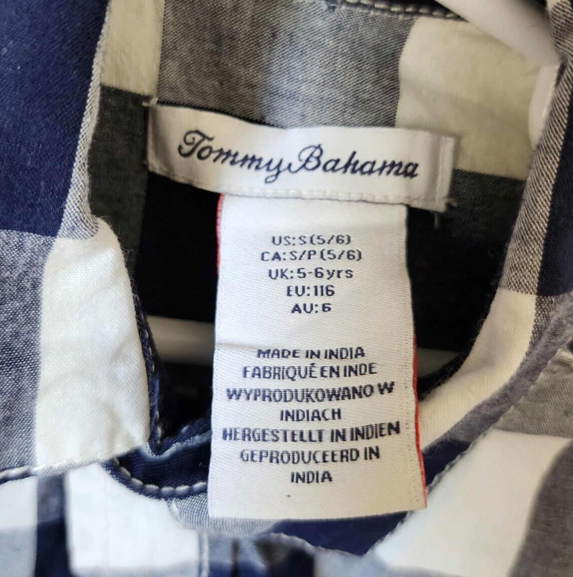как выглядит Tommy Bahama Navy Blue Plaid Long Sleeve Button Up Shirt Youth Size Small 5/6 фото