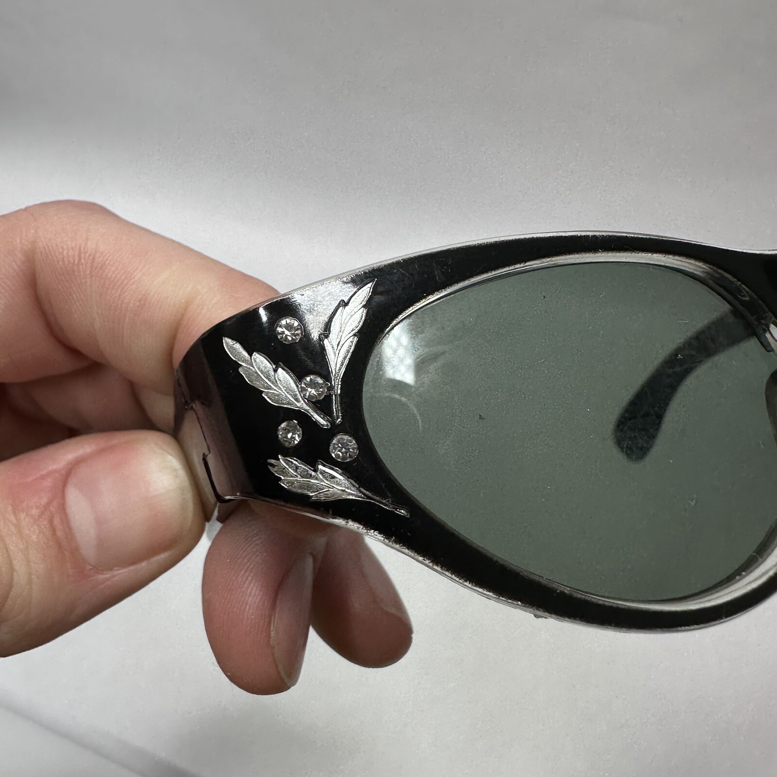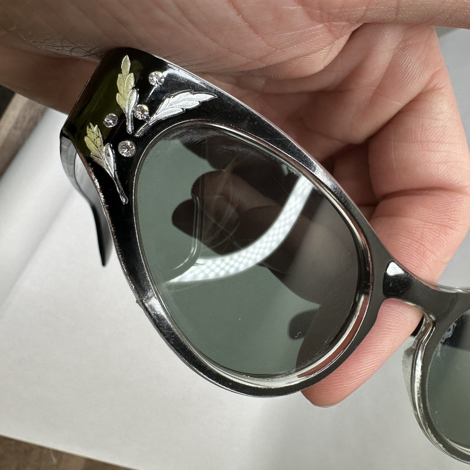 Vintage FG FOSTER GRANT Cats Eye black Sunglasses Embellished USA Made