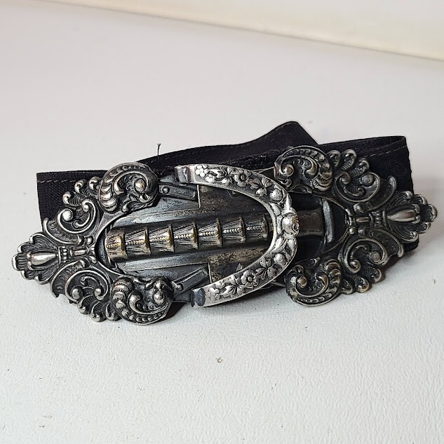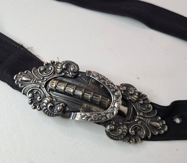Antique Ladies Belt Buckle Silverplate Edwardian Art Nouveau c 1905 Victorian