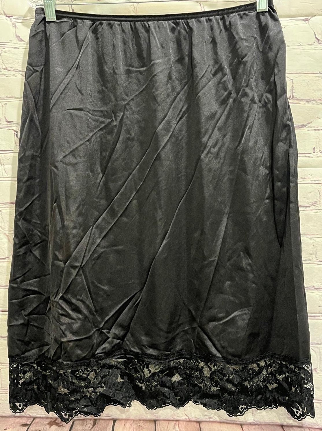 как выглядит VTG Vassarette Black Elastic Waist Wide Lace Hem 100 Nylon Half Slip 2XL 28 /46 фото