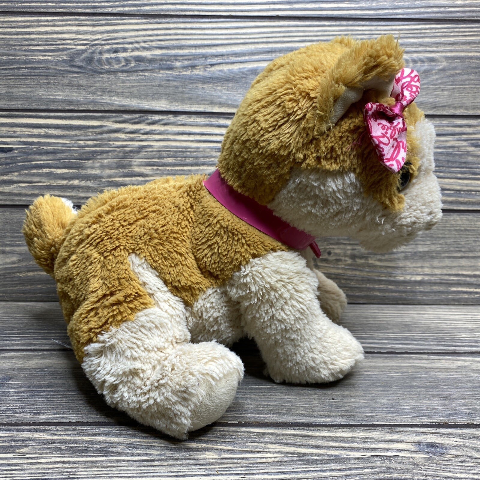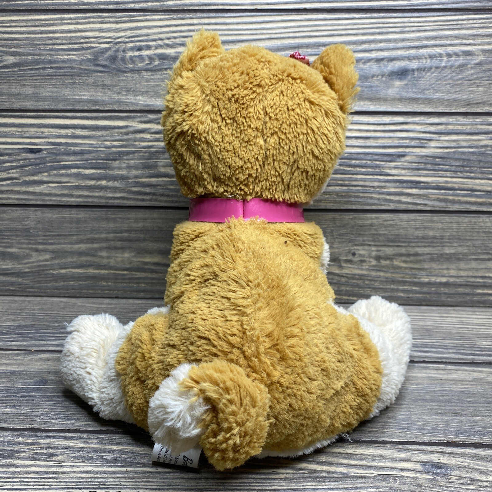 Vtg Mattel Barbie Tan White Puppy Dog Pink Bow Stuffed Animal Lovey Plush 11