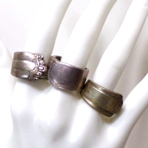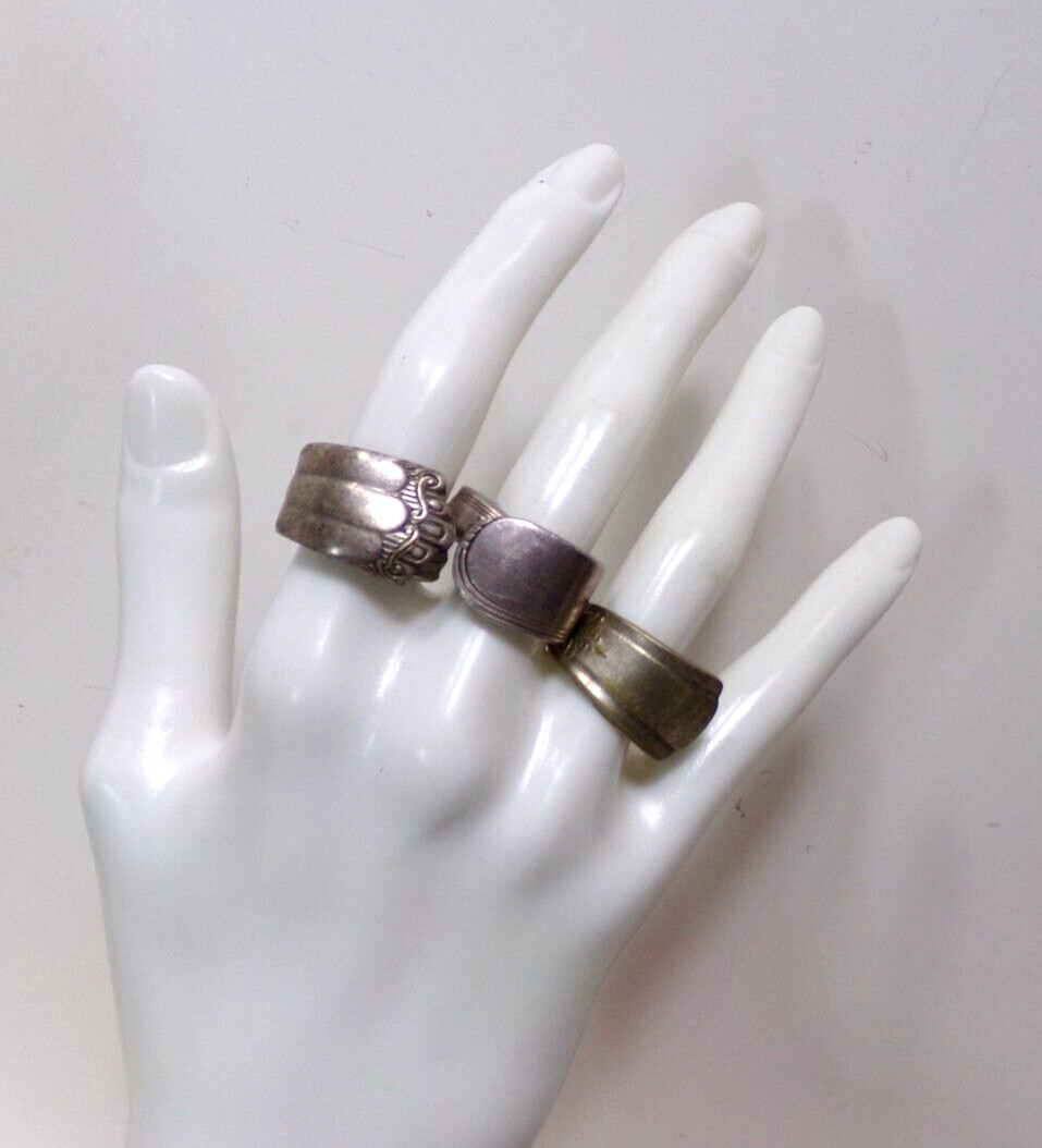 как выглядит LOT OF THREE HANDMADE SILVER PLATE SPOON RINGS SIZE 7 j88cr CK51 фото