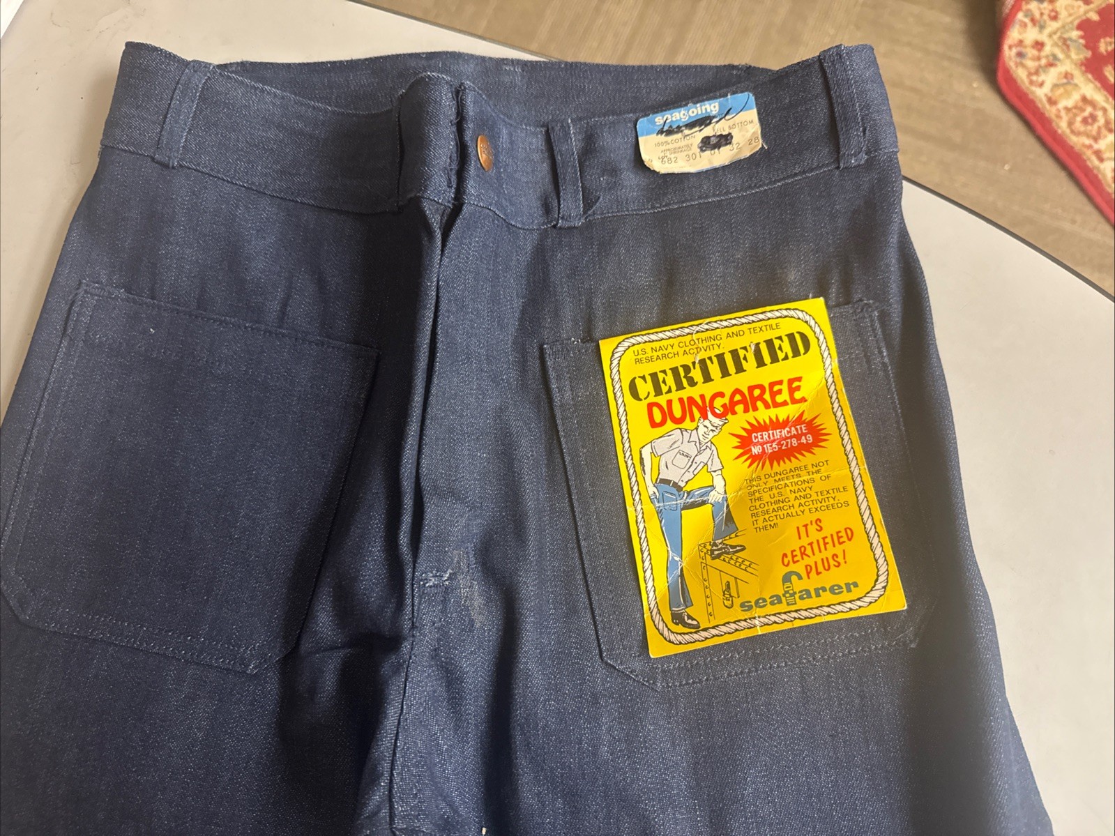 как выглядит True Vintage 60s Seafarer Navy Bell Bottom Flare Boot Cut Blue Jeans 32x28 фото