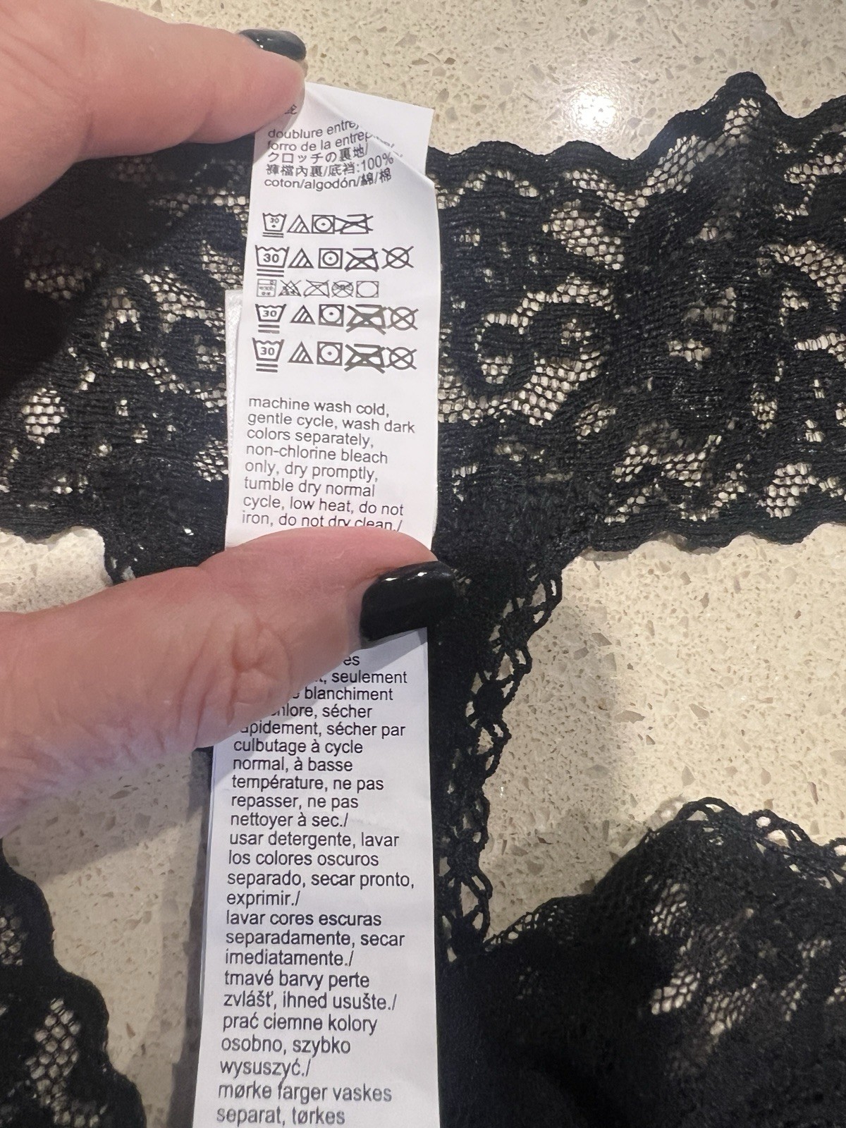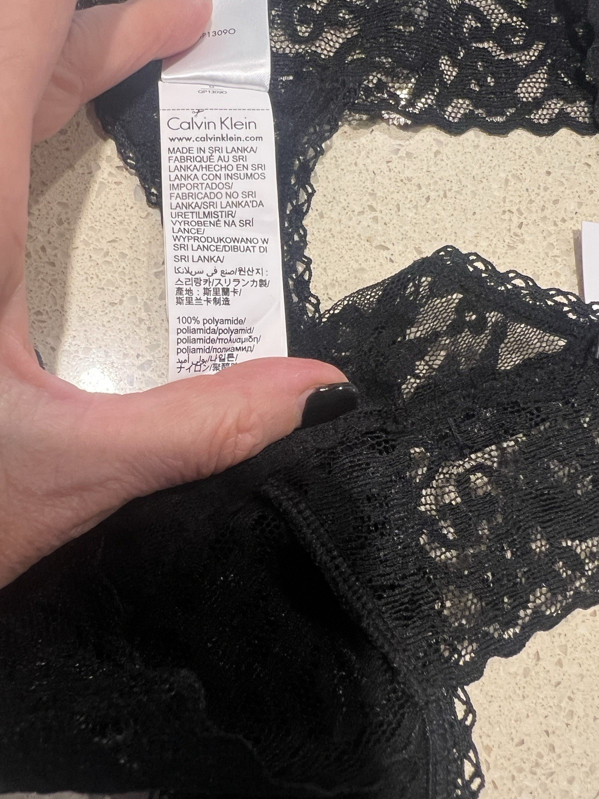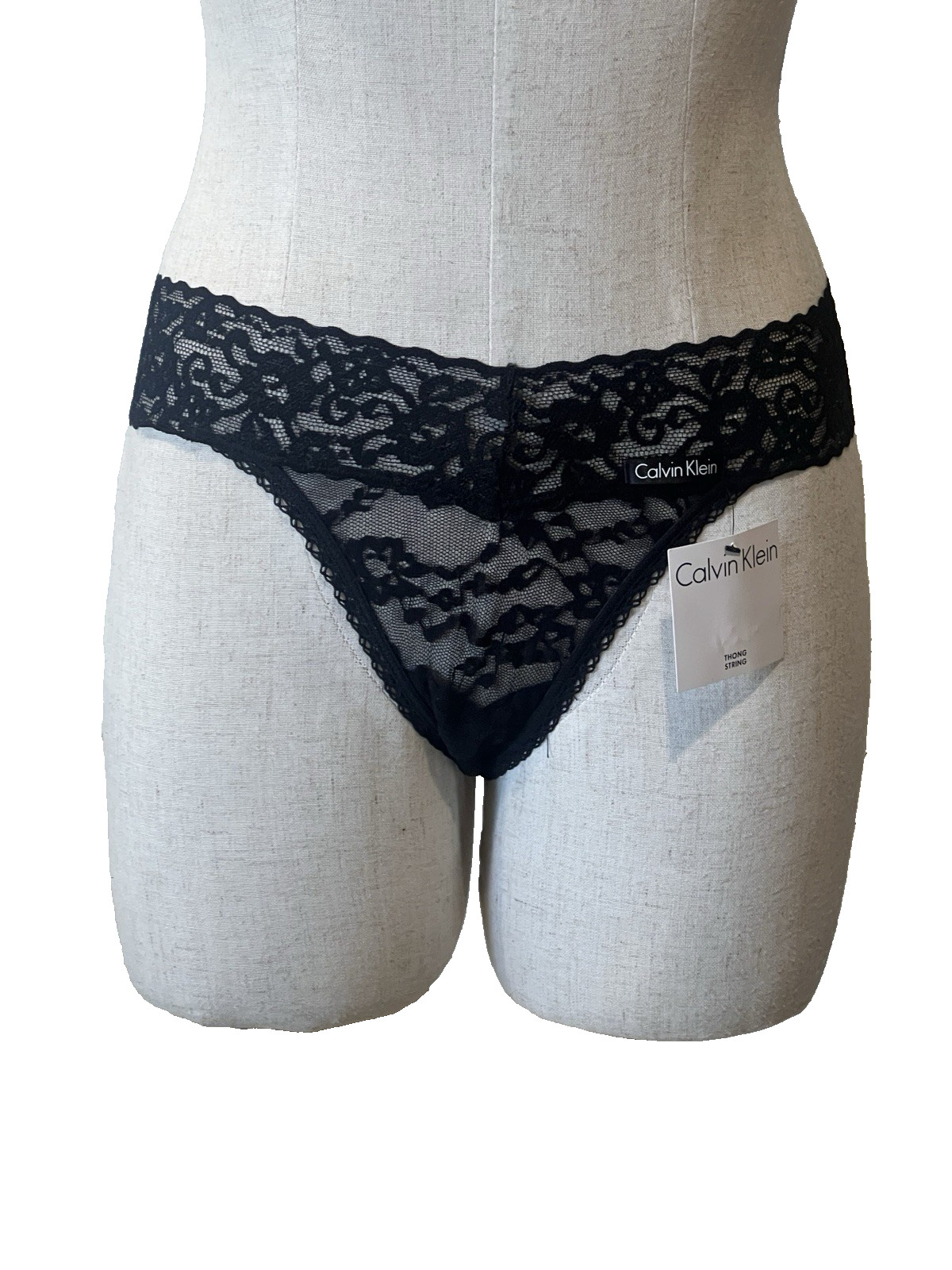 как выглядит CALVIN KLEIN NWT 29.95 QP1309O BLACK LACE STRETCH STRING THONG M/12AUST/8US фото