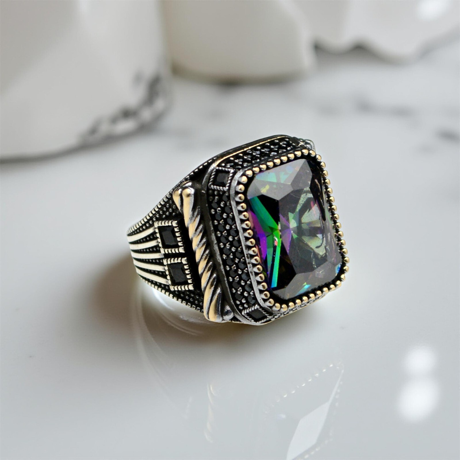 как выглядит 925 Sterling Silver Mens Ring with Rainbow Mystic Topaz Size 7-15 us фото
