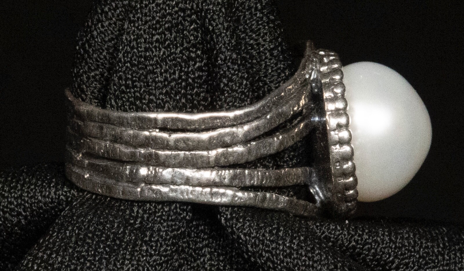 как выглядит Sterling Silver 10mm Pearl Ring Handmade 7mm Band Israel Size 8 1/2 фото