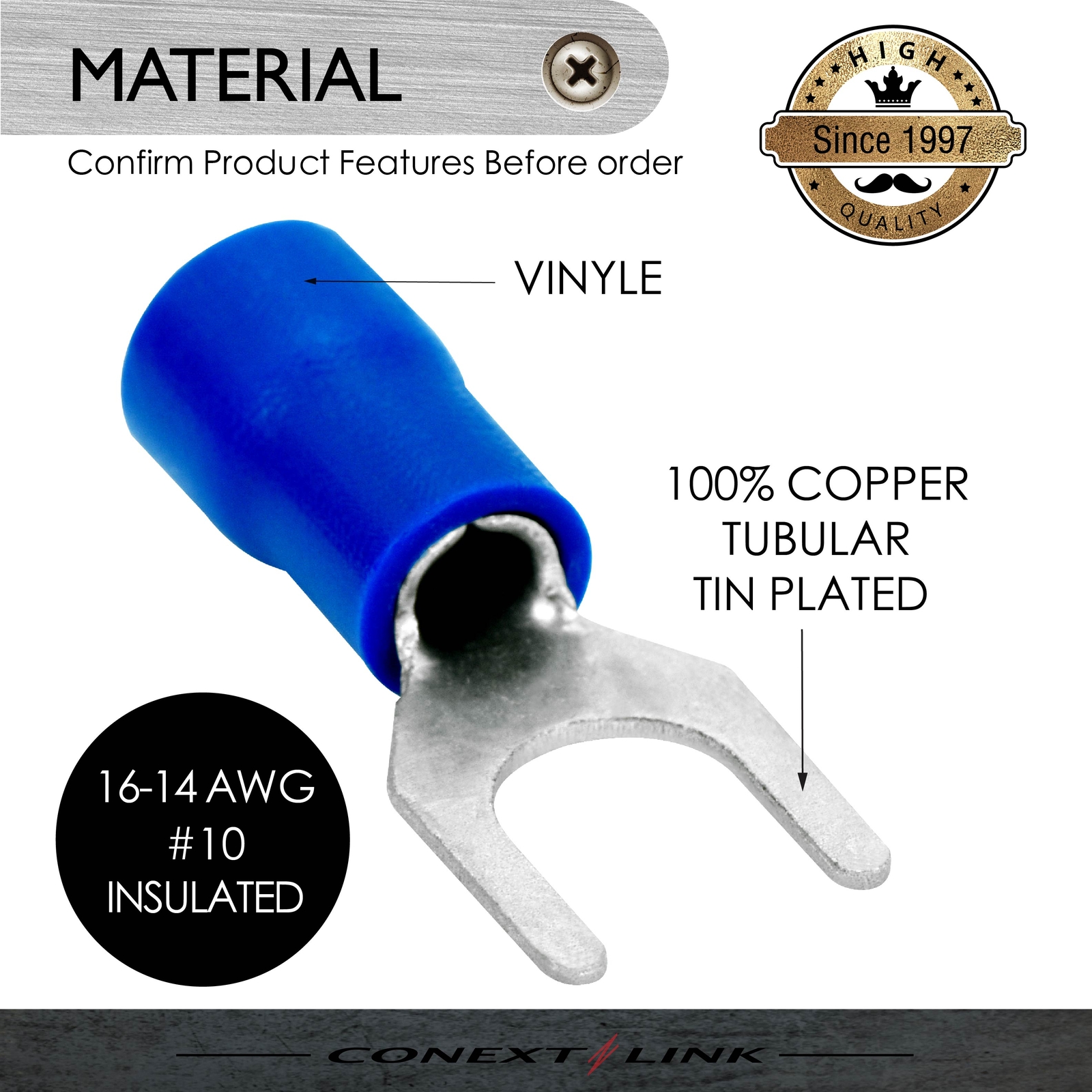 25 Spade Fork Terminal Connector Vinyl Blue 16-14 GA AWG Gauge 10 Stud Speaker