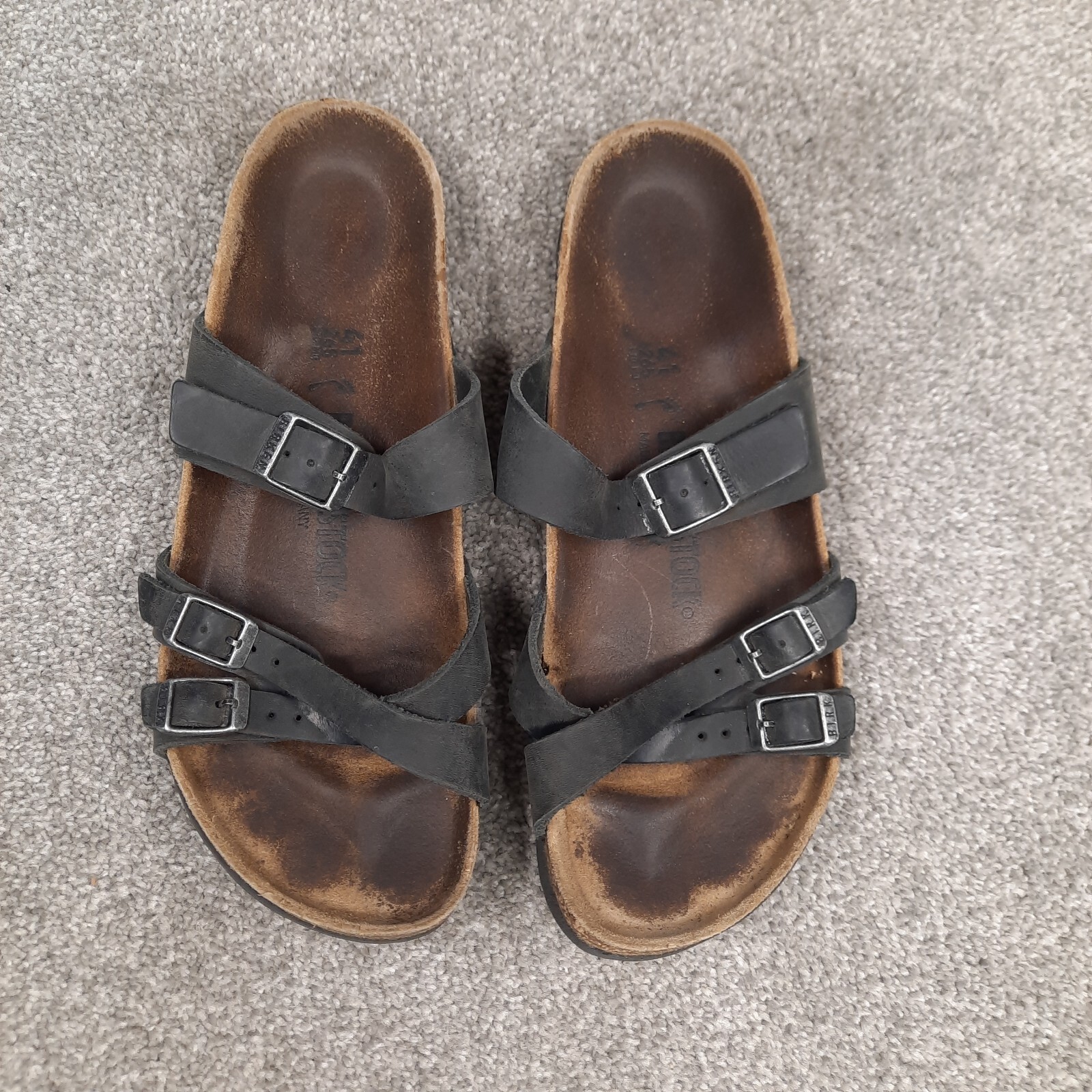 как выглядит Birkenstock Franca Sandals Women Size 10 US 41 Brown Black Slip On Shoes Leather фото