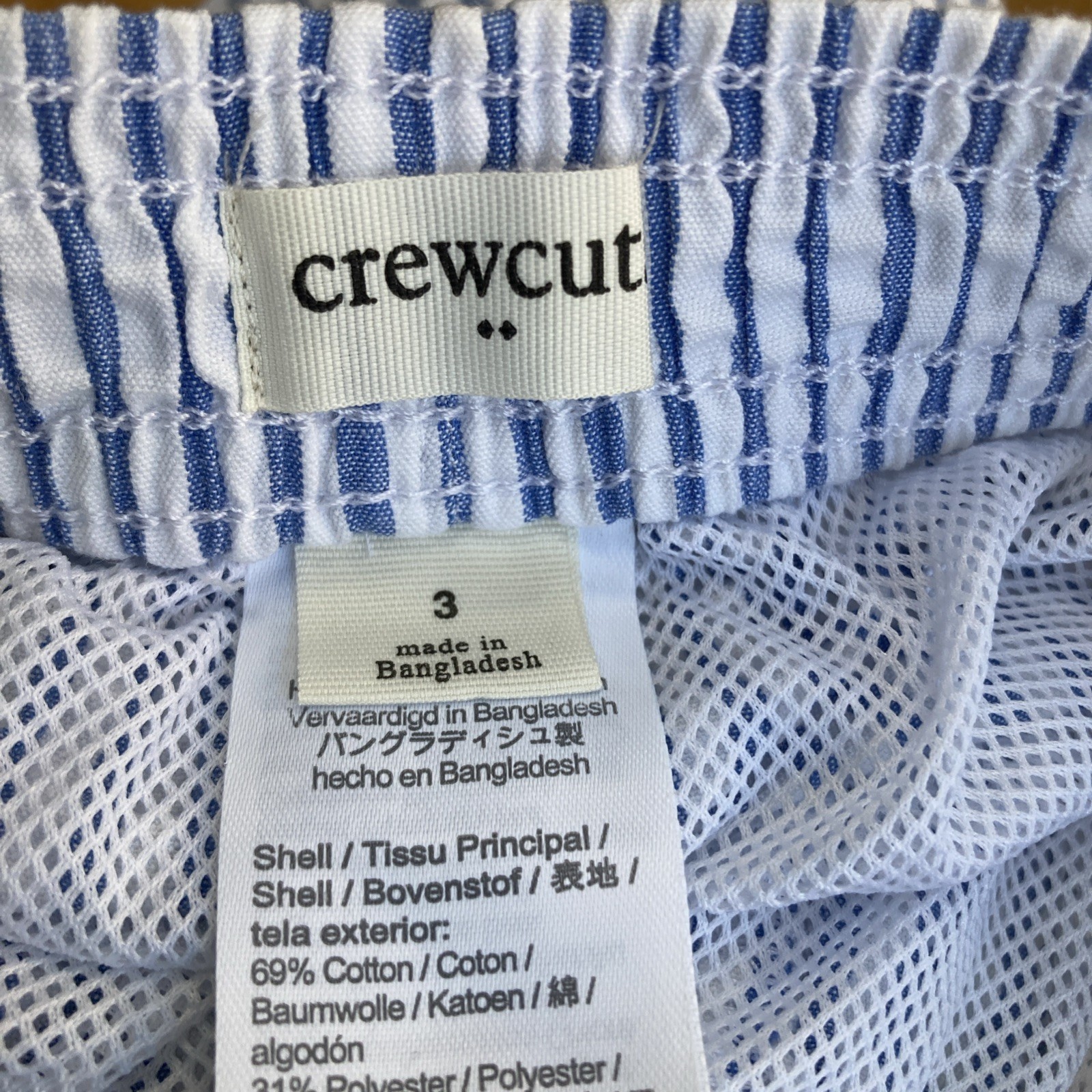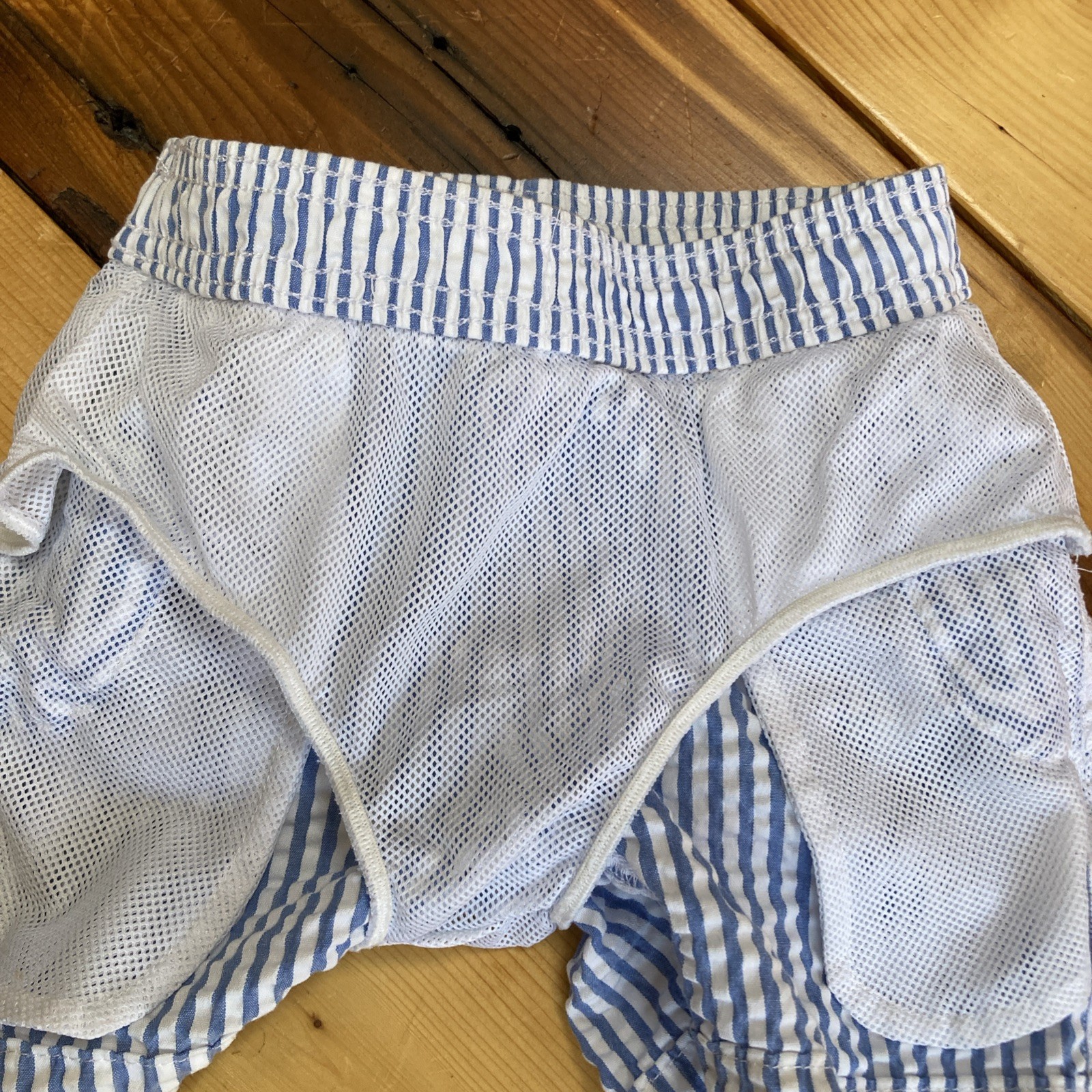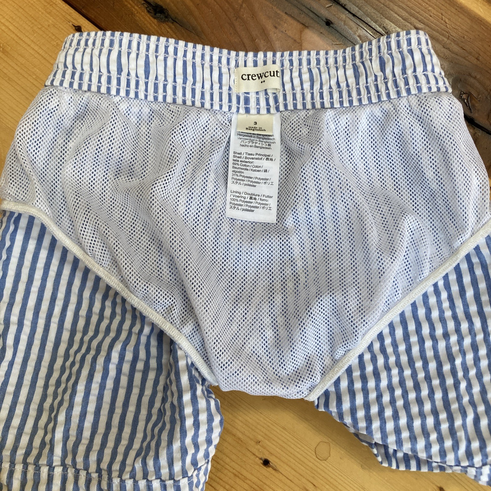 CREWCUTS 3 Swim Trunks Blue White Seersucker Drawstring Pocket Elasticize Toddle