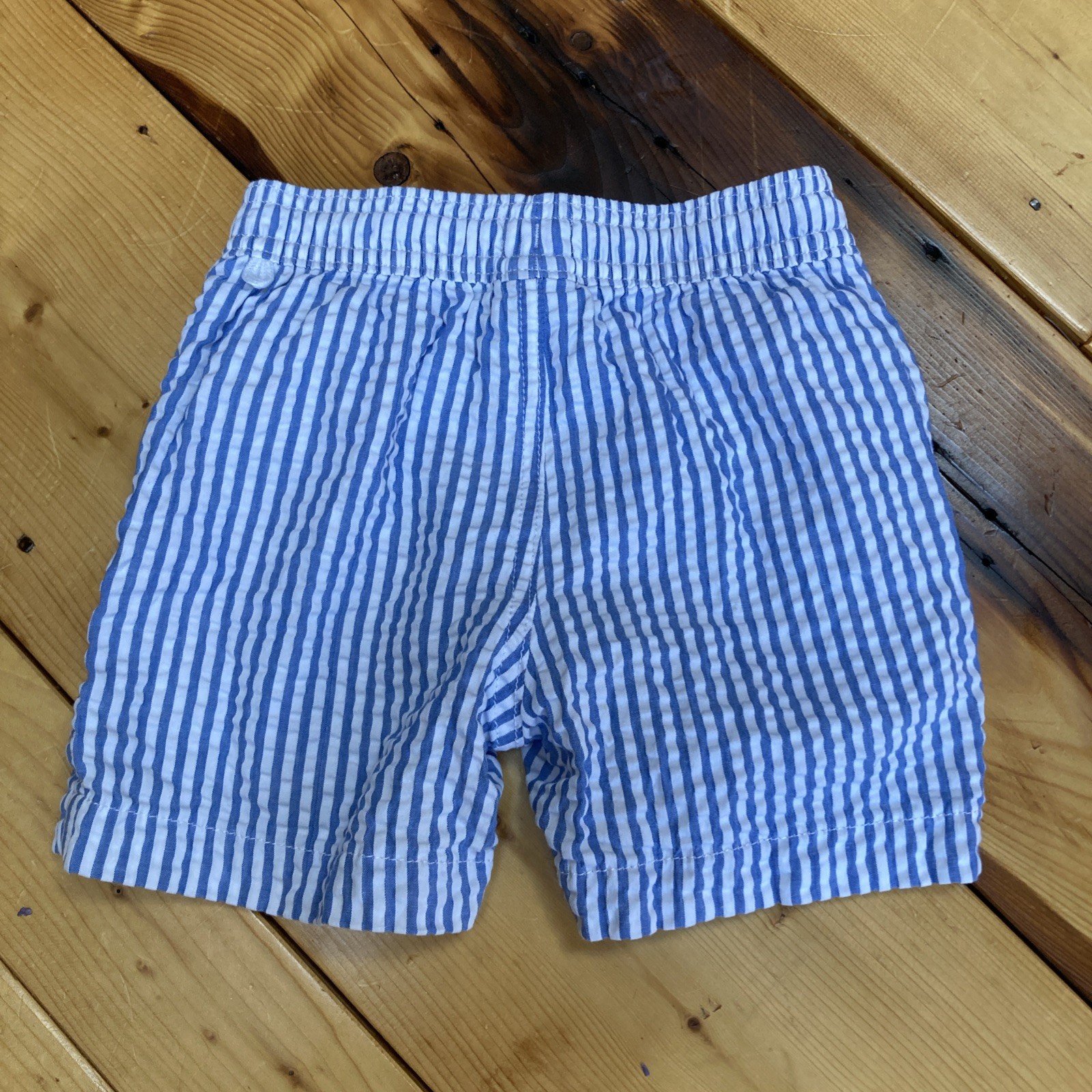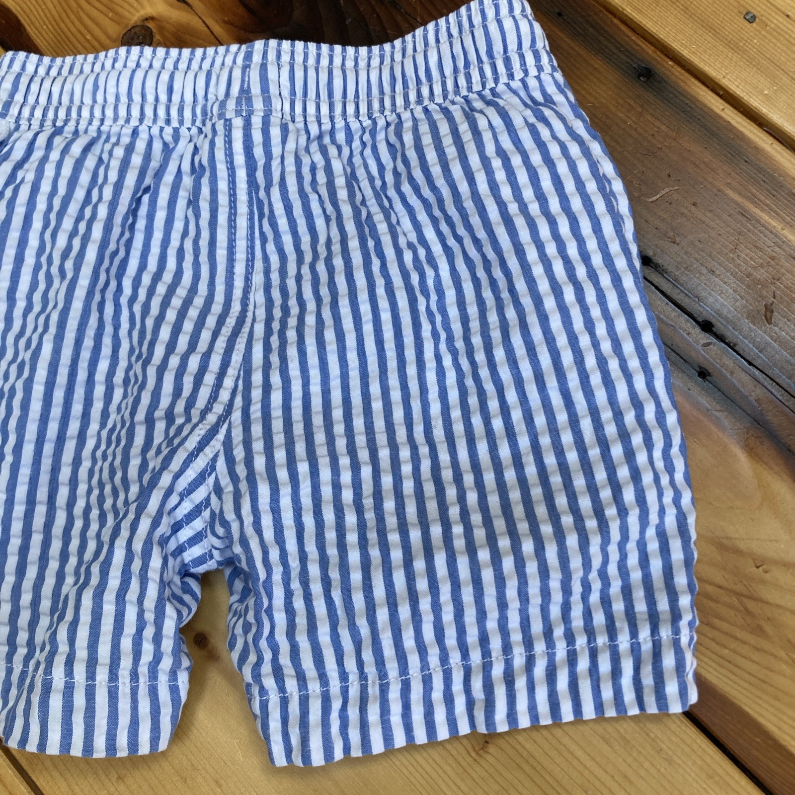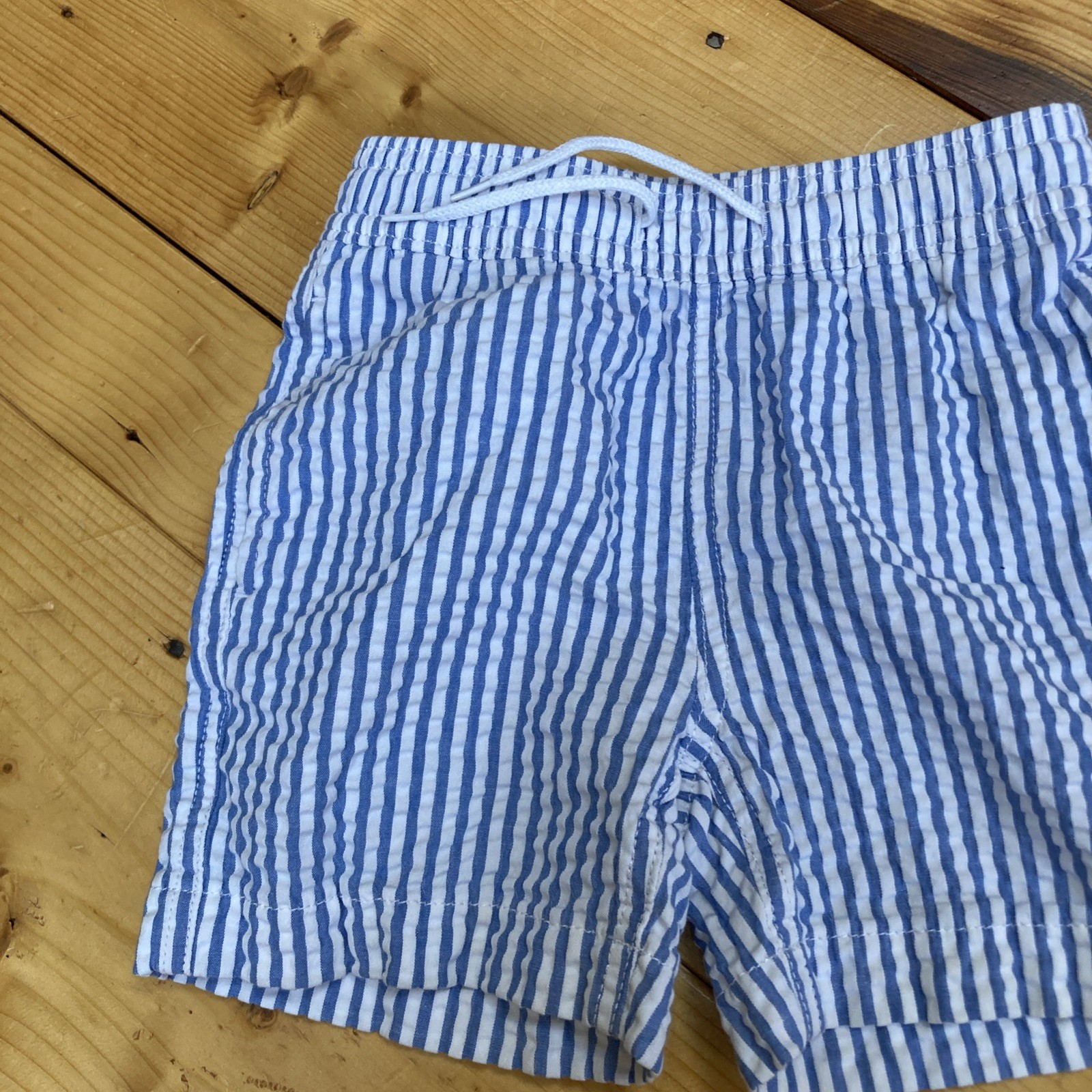 как выглядит CREWCUTS 3 Swim Trunks Blue White Seersucker Drawstring Pocket Elasticize Toddle фото