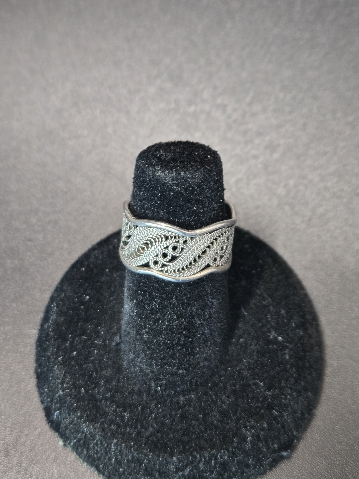 Vintage Sterling Silver Filigree Band Ring 925 FLORAL Ring sz 5