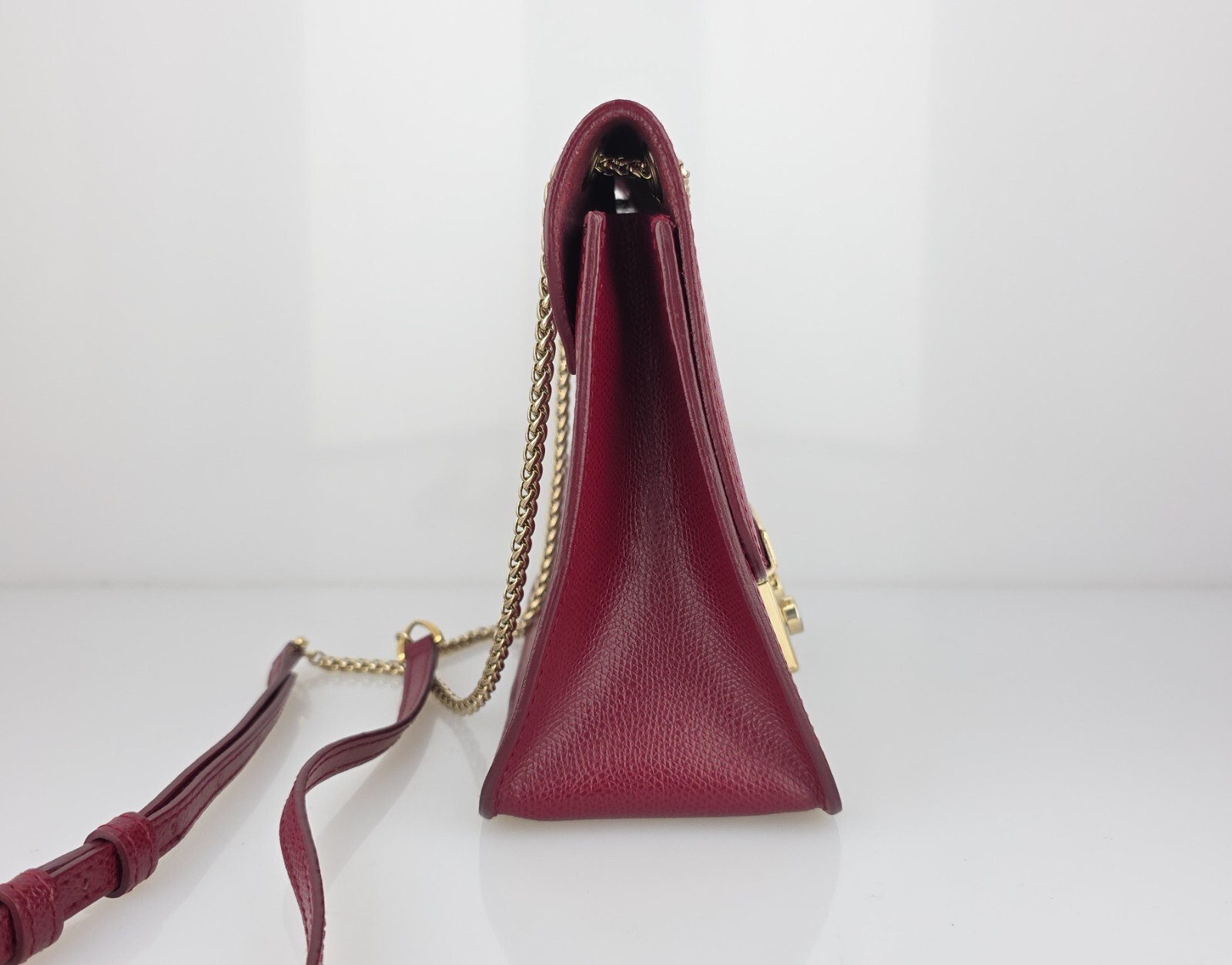 как выглядит Furla Saffiano Leather Shoulder Bag w/ Gold Tone Chain Burgundy фото