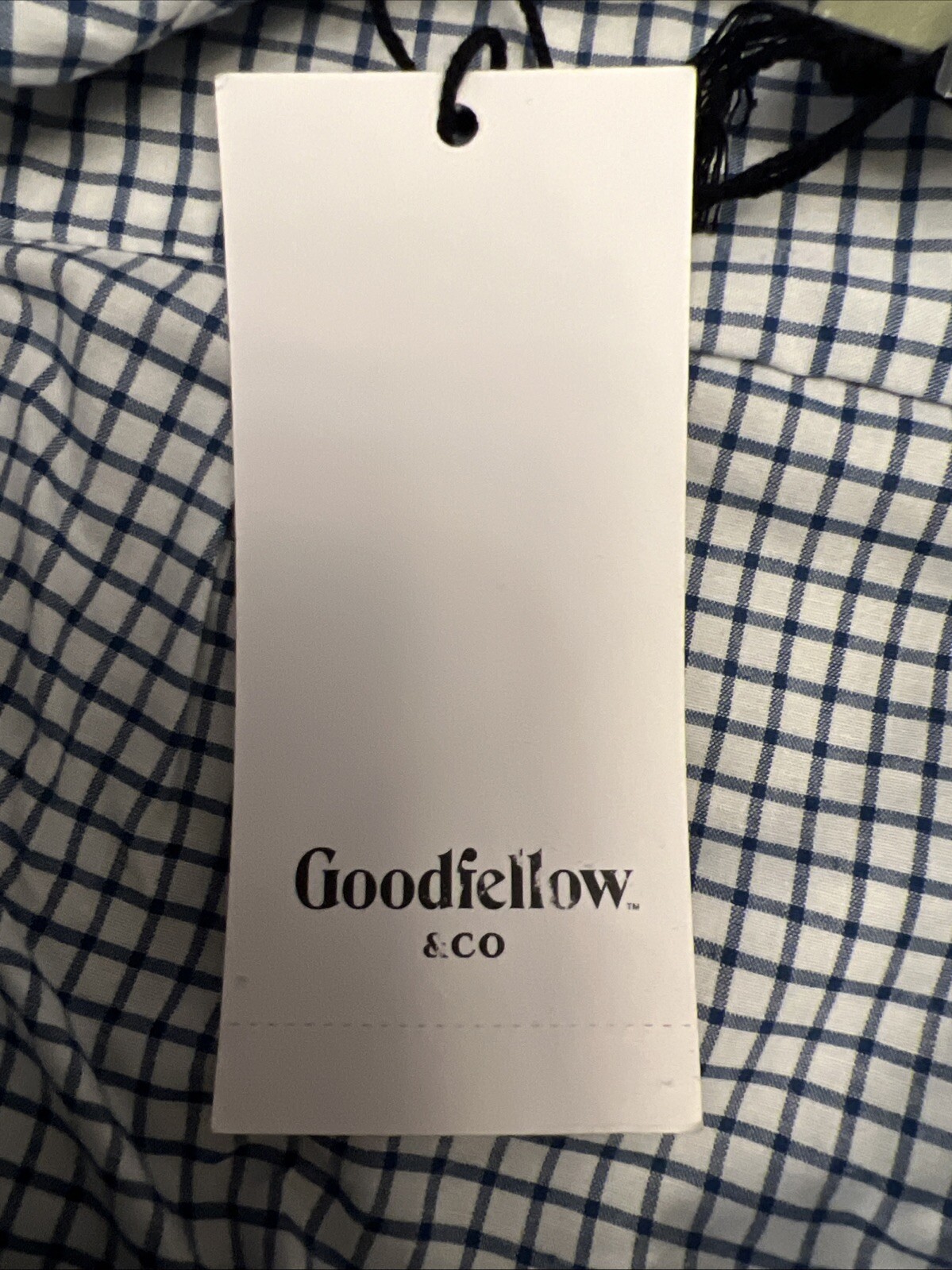 Goodfellow men s dress shirt, small 14 14 1/2 blue plaid NWT