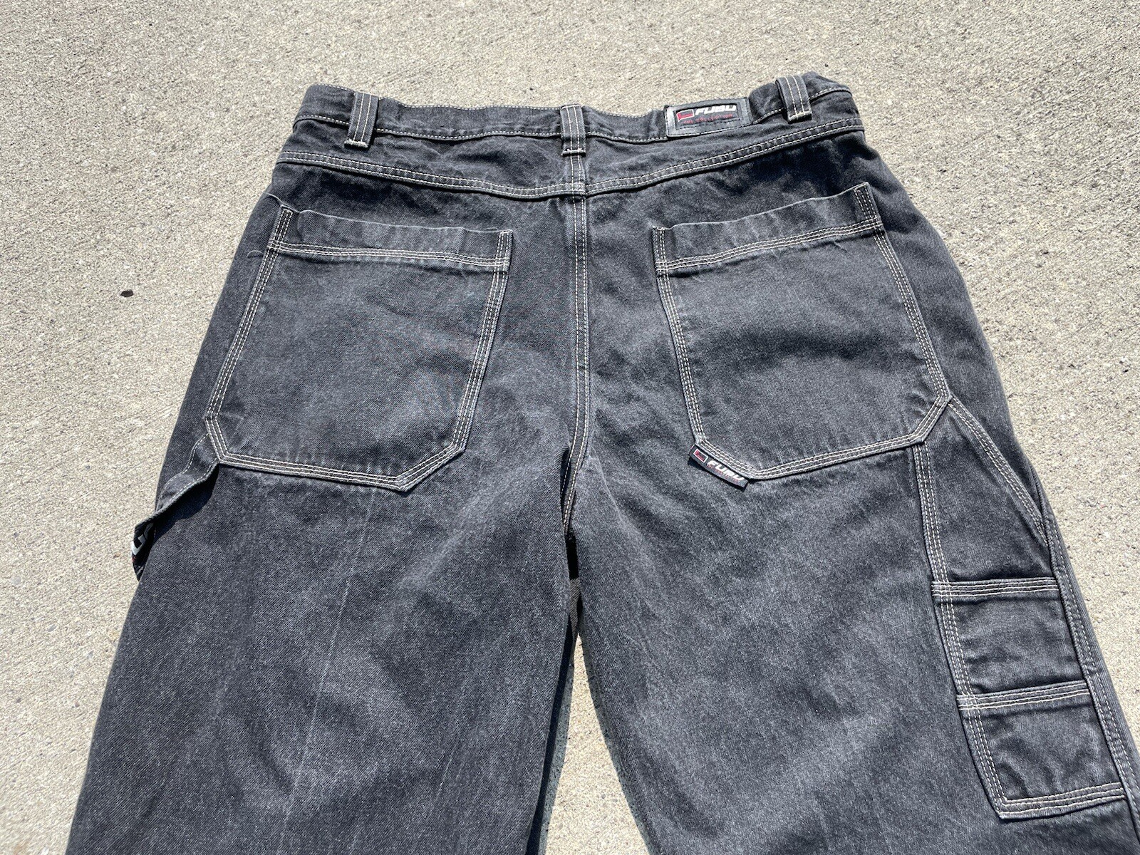 как выглядит vinatge FUBU Collection Black Wide Leg Baggy Denim Jeans 40 x 34 y2k hip hop фото