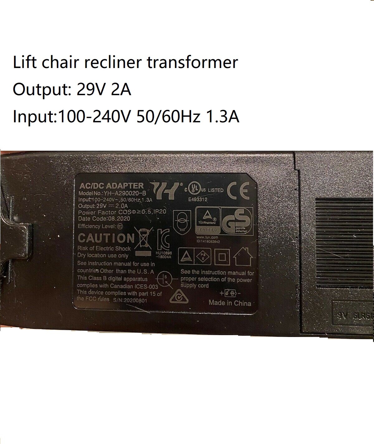 как выглядит Power Recliner Transformer Charger or Okin Limoss Lift Chair adapter withCables фото
