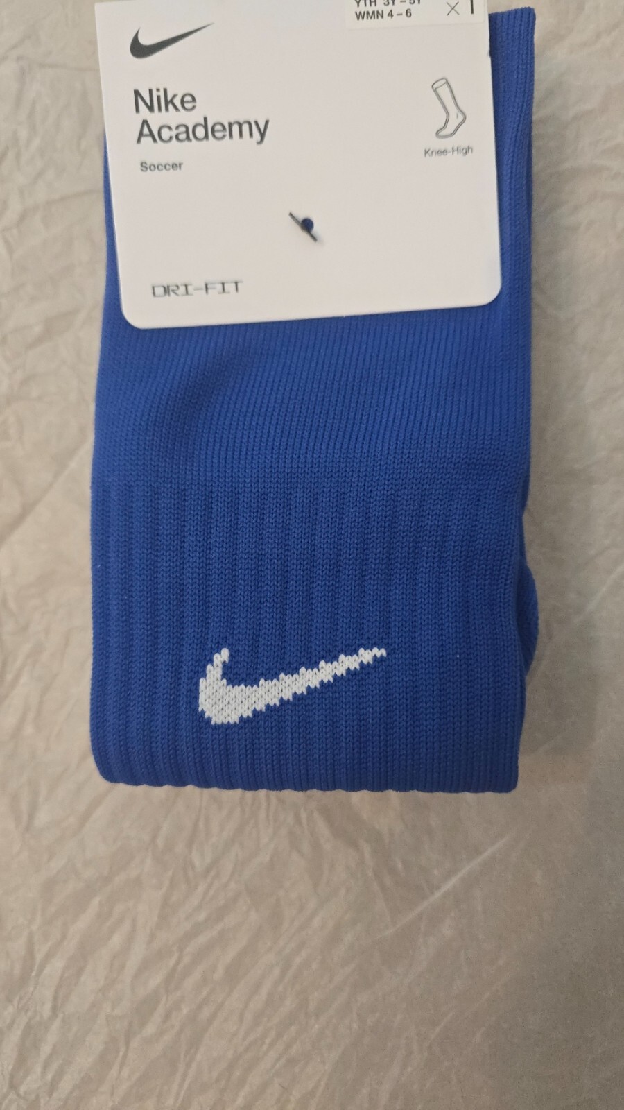 Nike ACADEMY Knee High Soccer Socks Blue Dri-Fit YTH 3Y-5Y WMN 4 - 6 Small