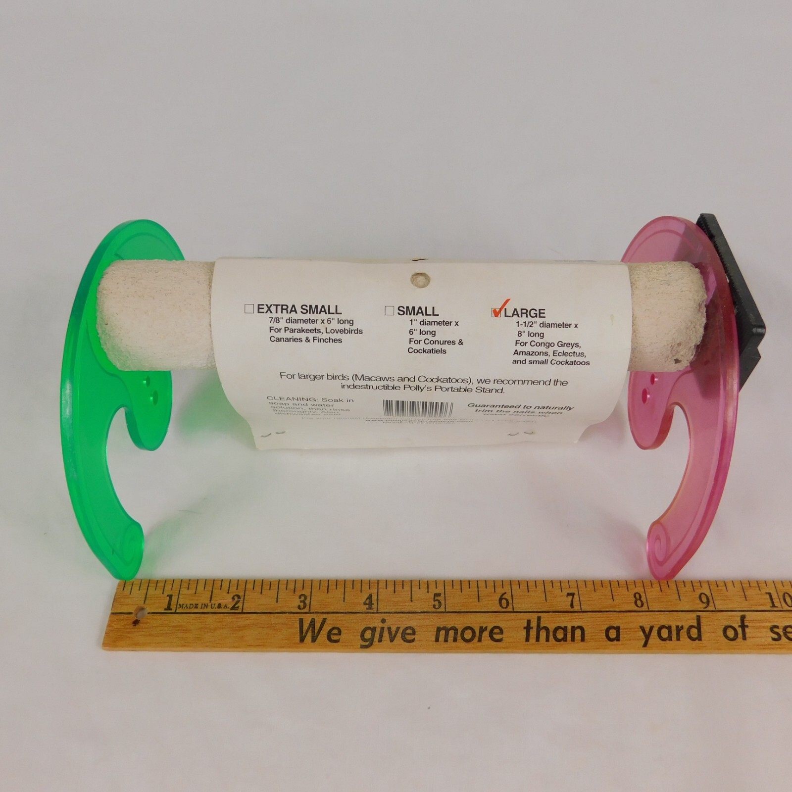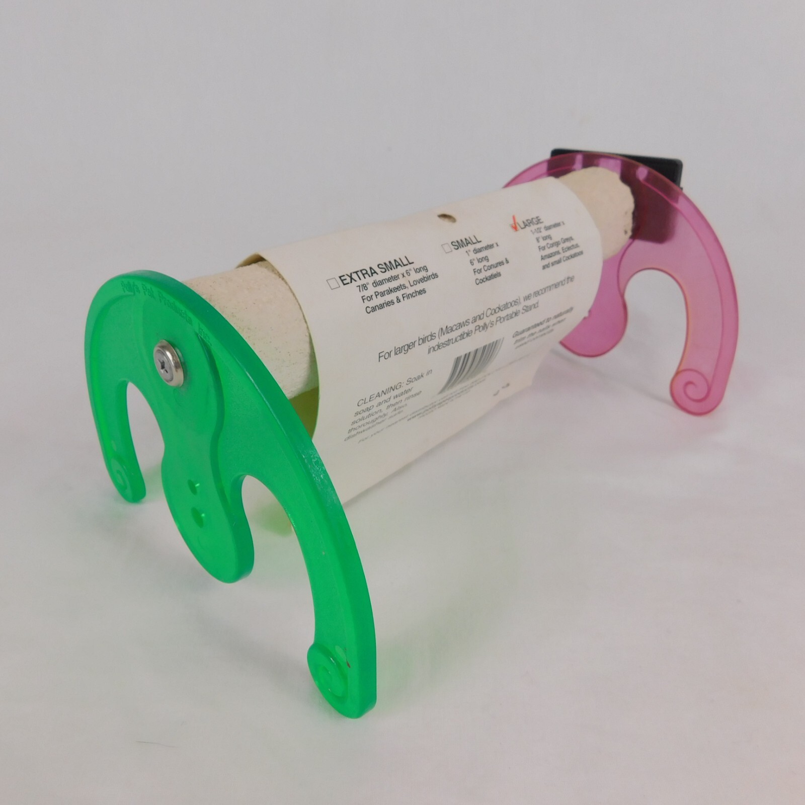 Polly's Portable Large Parrot Stand Rocker 1.5x8 Long Nail Trim Perch Grn Red