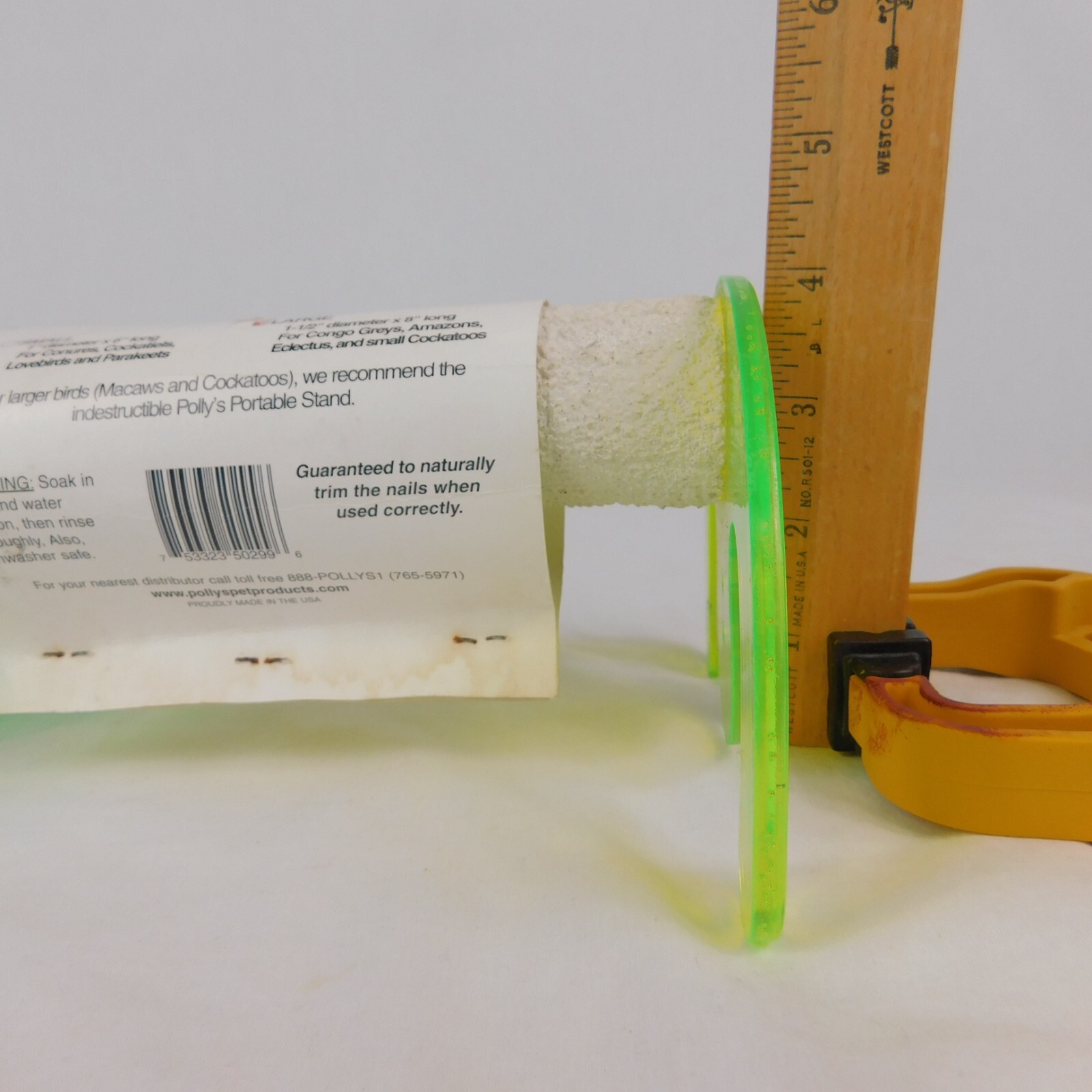 как выглядит Pollys Portable Large Parrot Stand Rocker 1.5"x8" Long Nail Trim Perch Grn Ylw фото