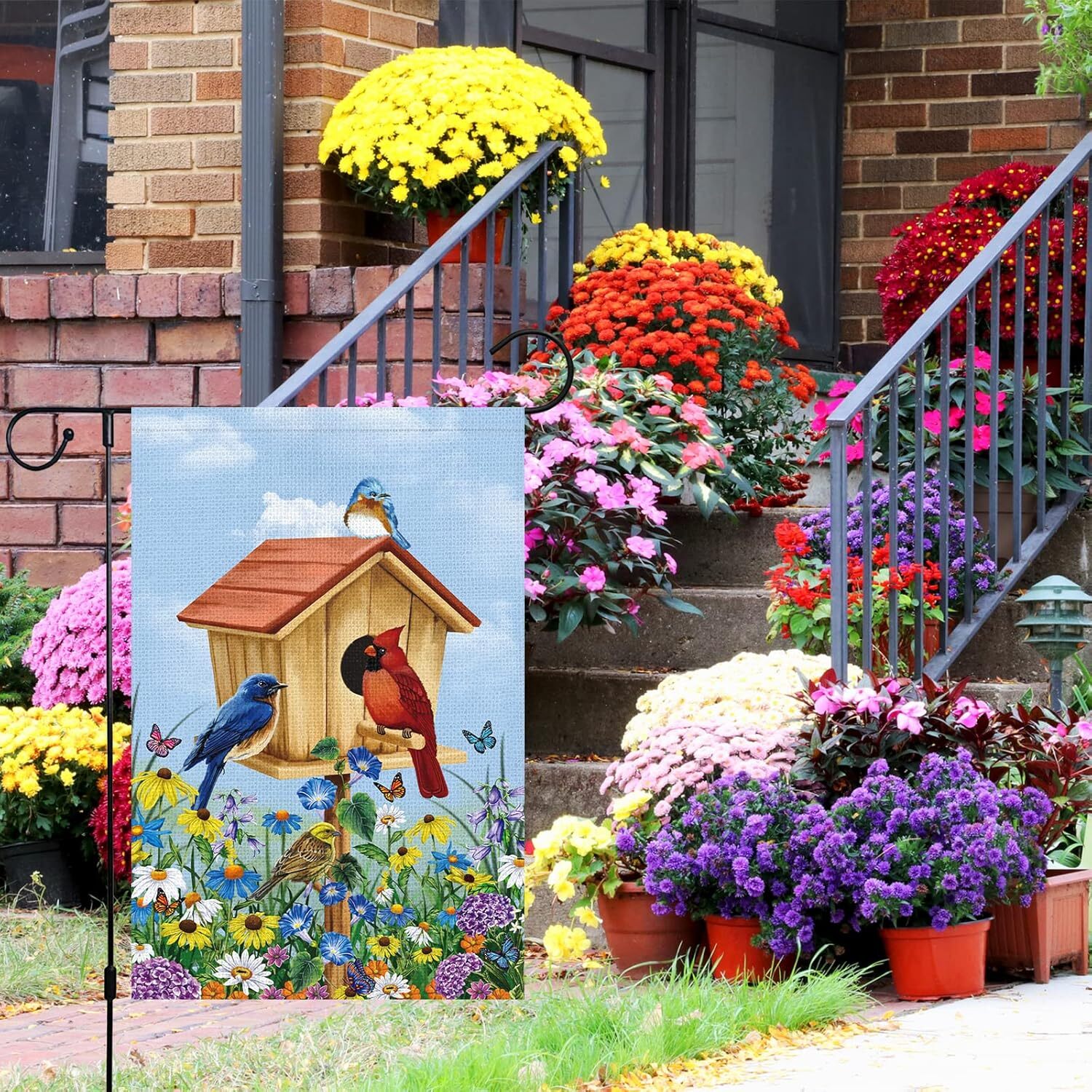 Welcome Spring Bird Garden Flag 12x18 Double Sided Vertical, Burlap Small Flo...