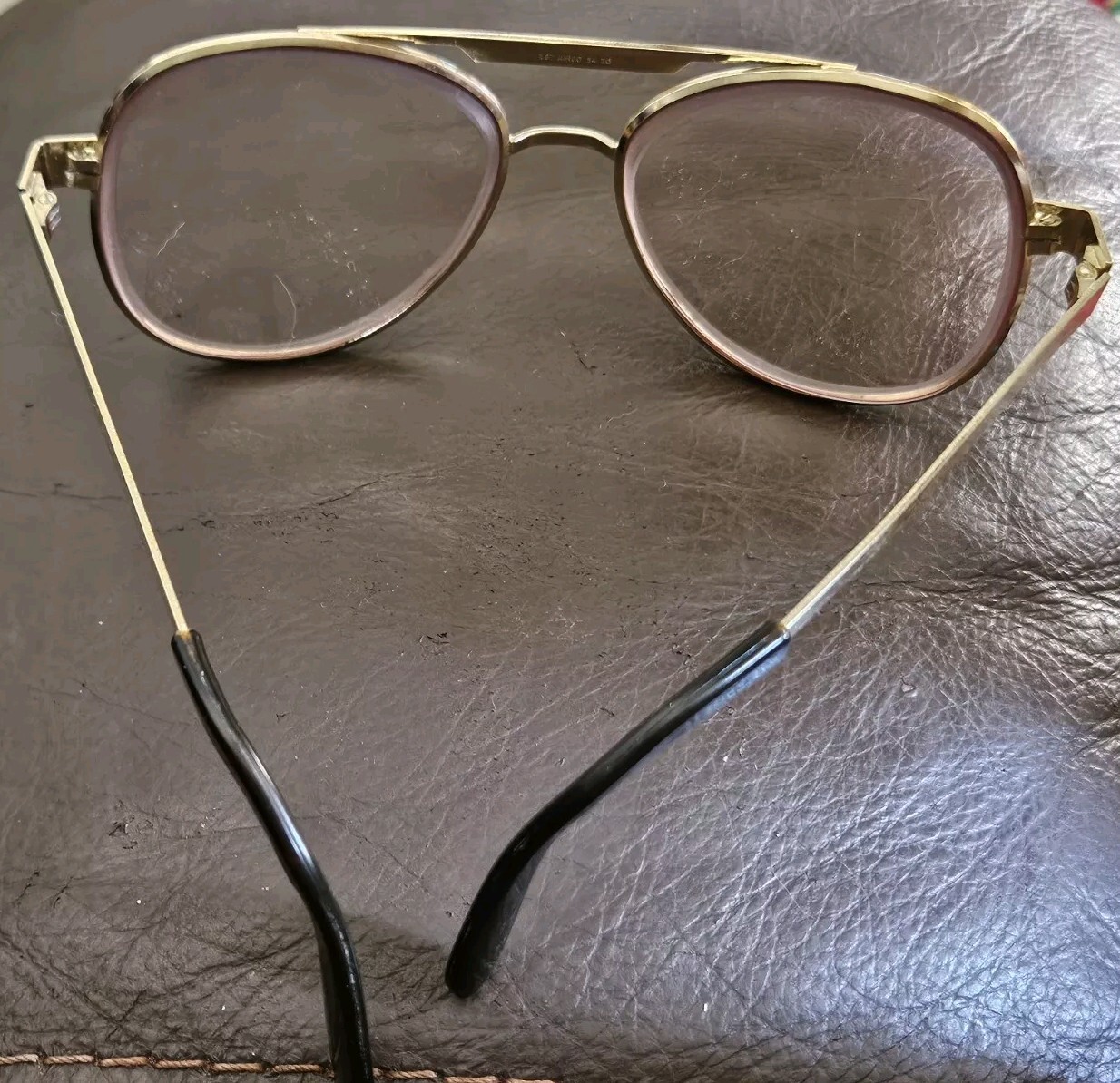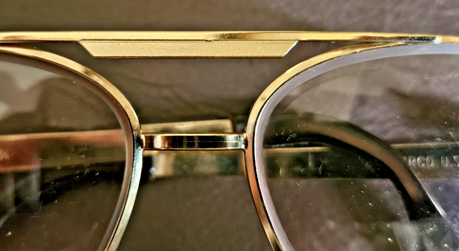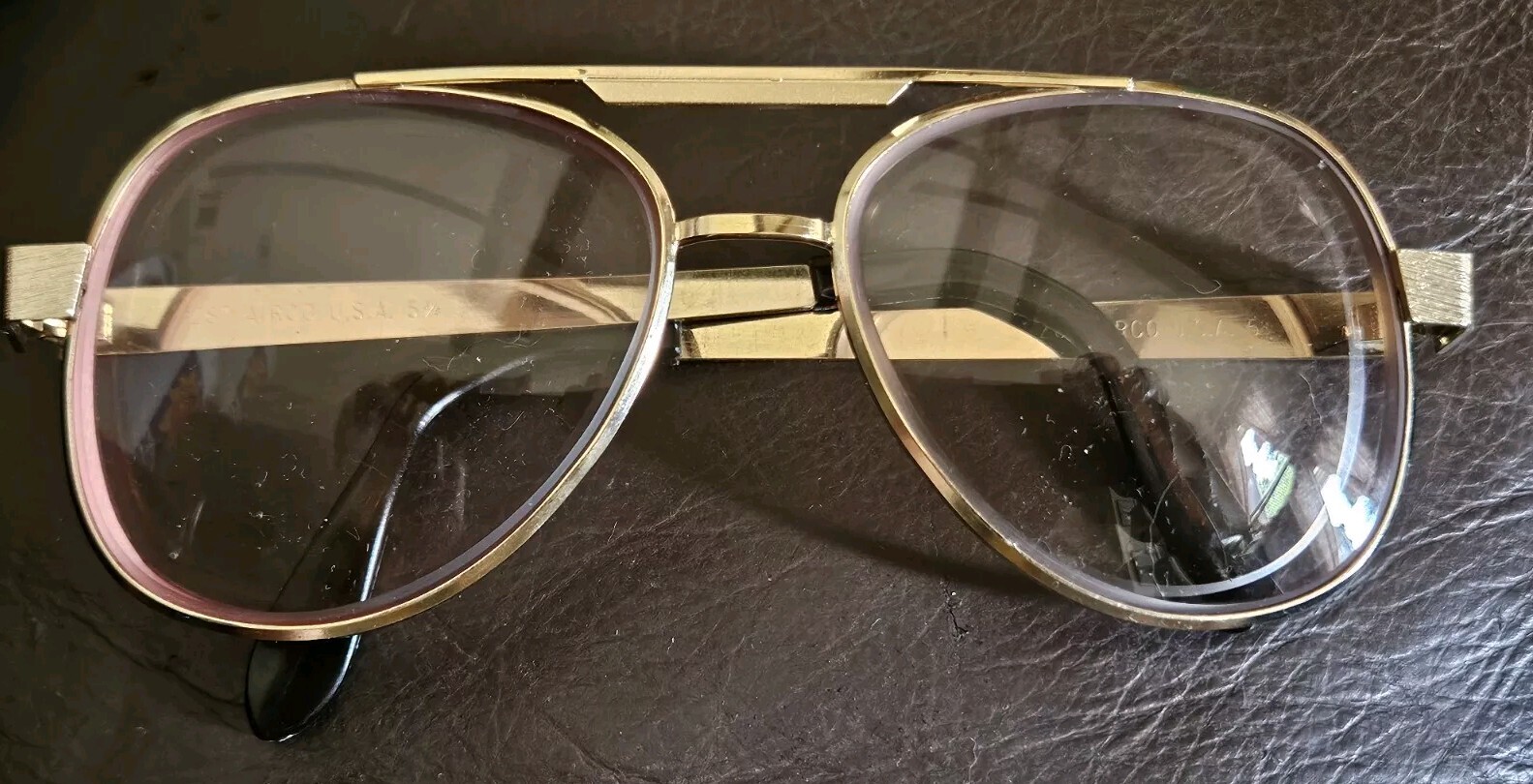 Airco Z87 Eye glass USA 5 3/4 Gold Pilot Metal Brown Ear Frames Vintage Frames