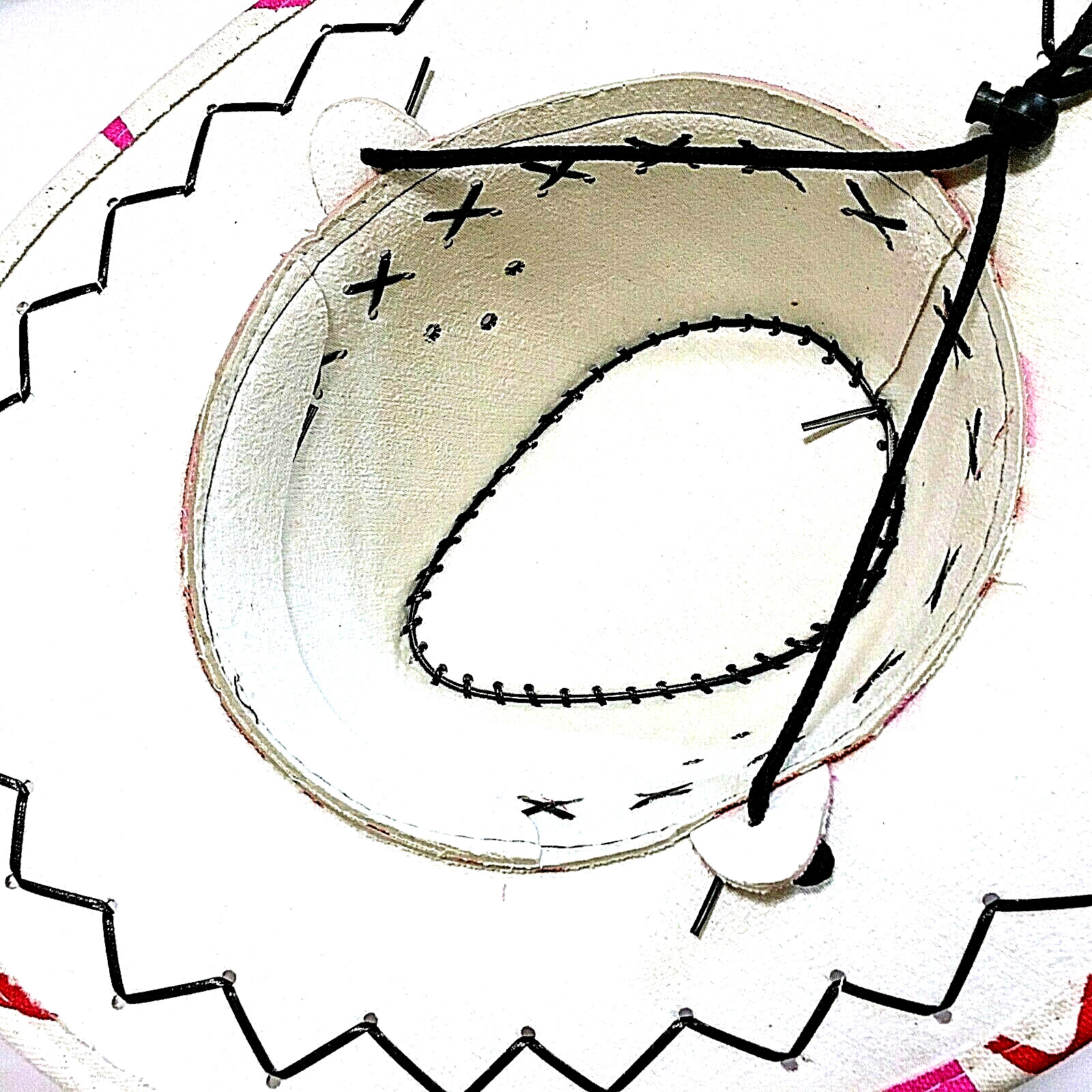 Western Cowgirl Redeo Canvas Women Hat Hawiian Hibiscus Floral Pink Red Fun Rare