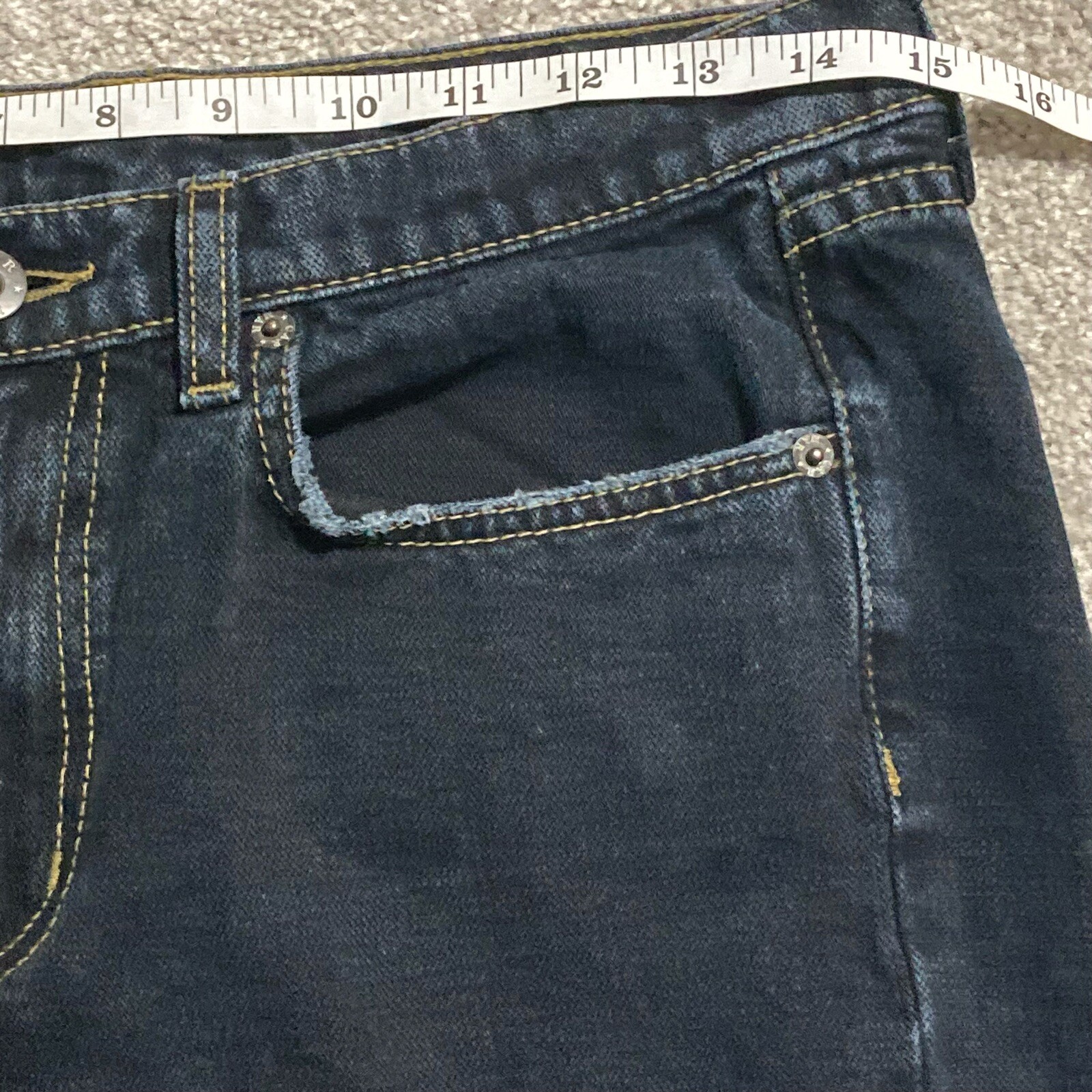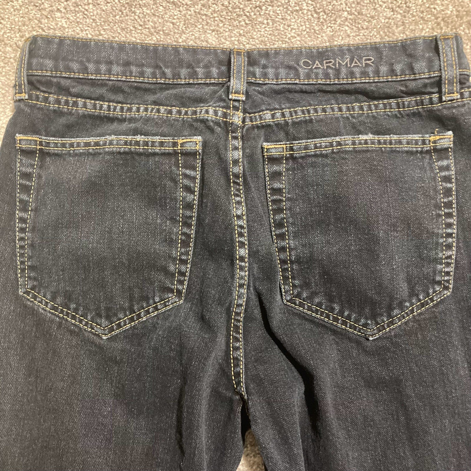 как выглядит Carmar Jeans 26 Womens Dark Wash Distressed Straight Leg Grunge Visible Stitch фото