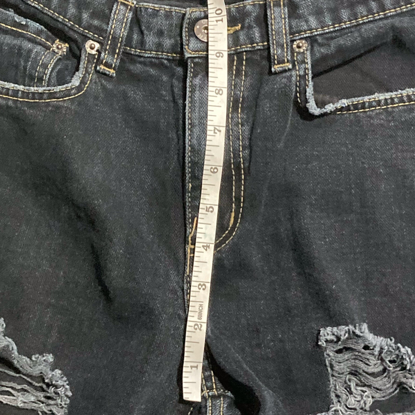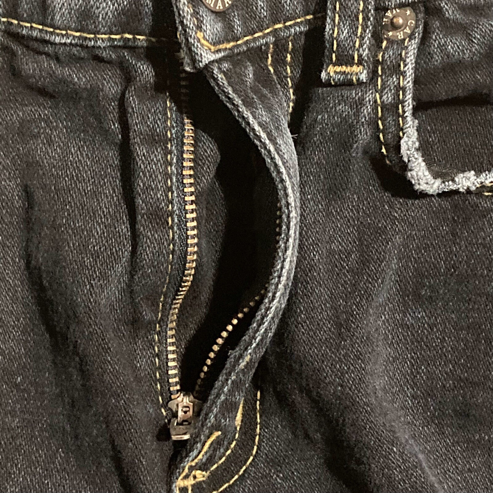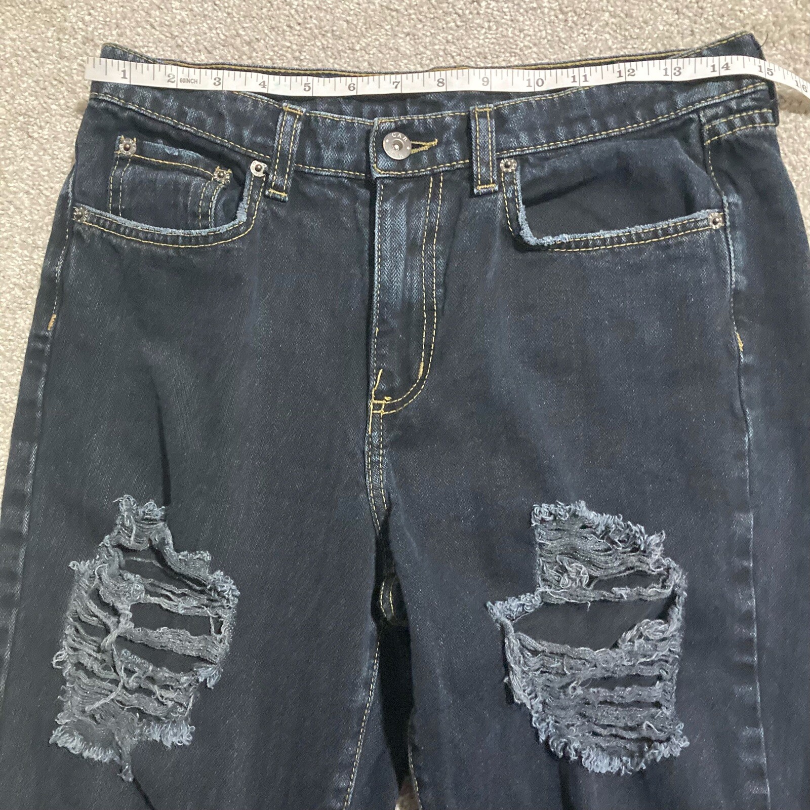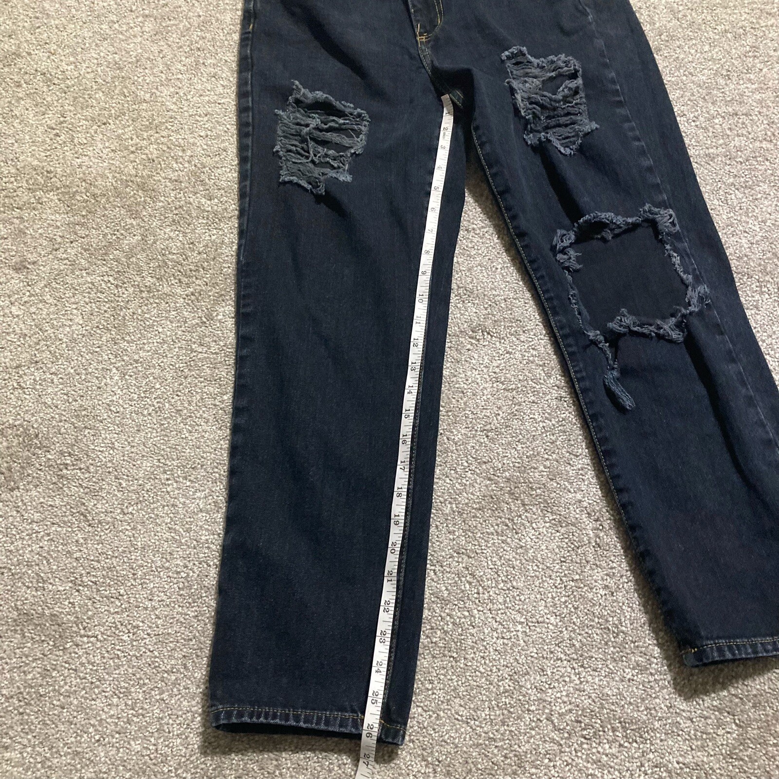Carmar Jeans 26 Women's Dark Wash Distressed Straight Leg Grunge Visible Stitch