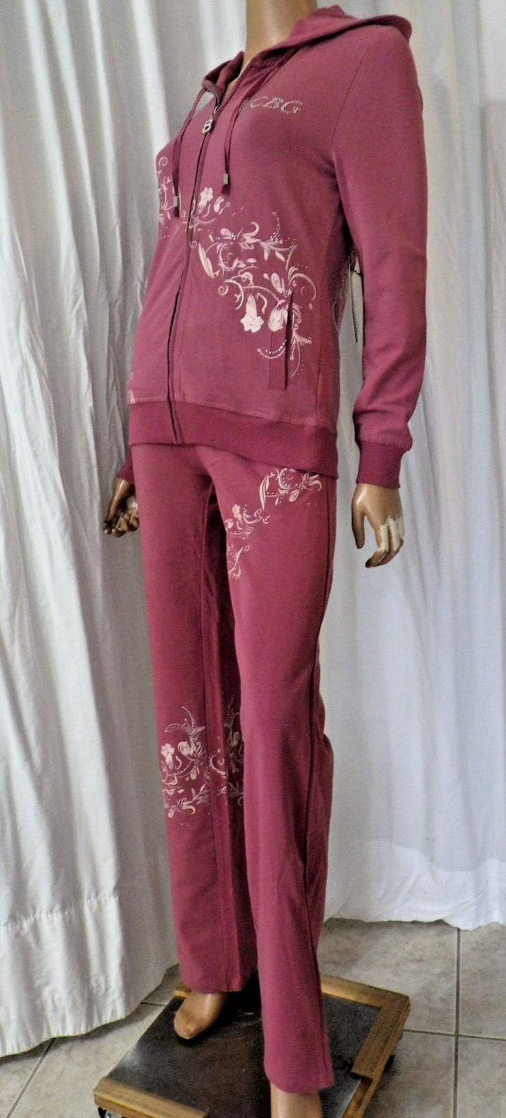 NWT BCBG sz LARGE Bust38-40 95 cotton PINK HUMMINGBIRD 2PC TRACKSUIT