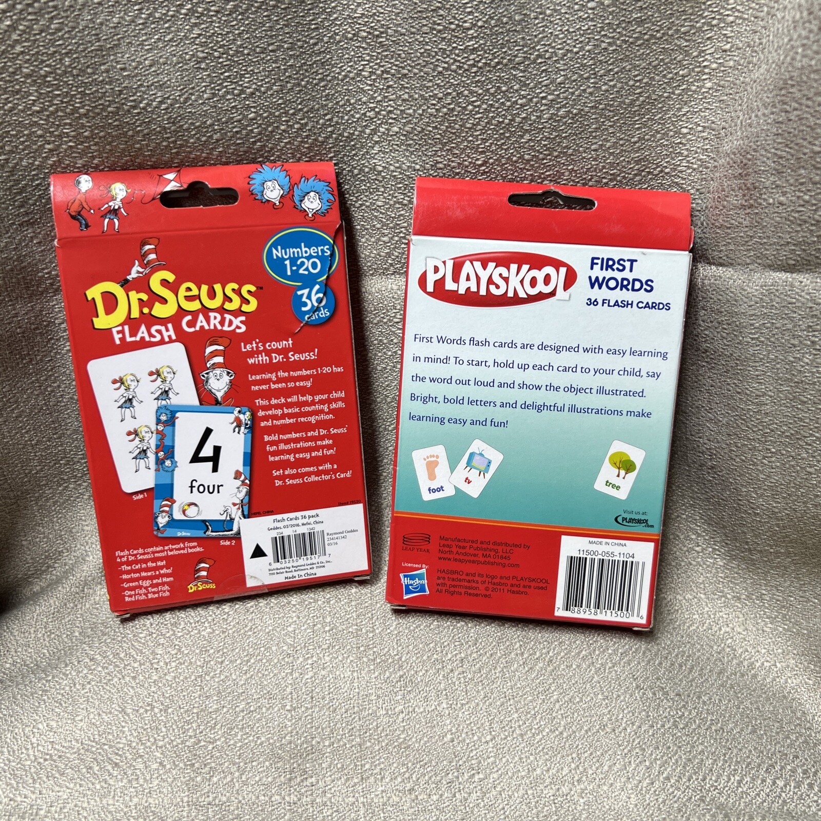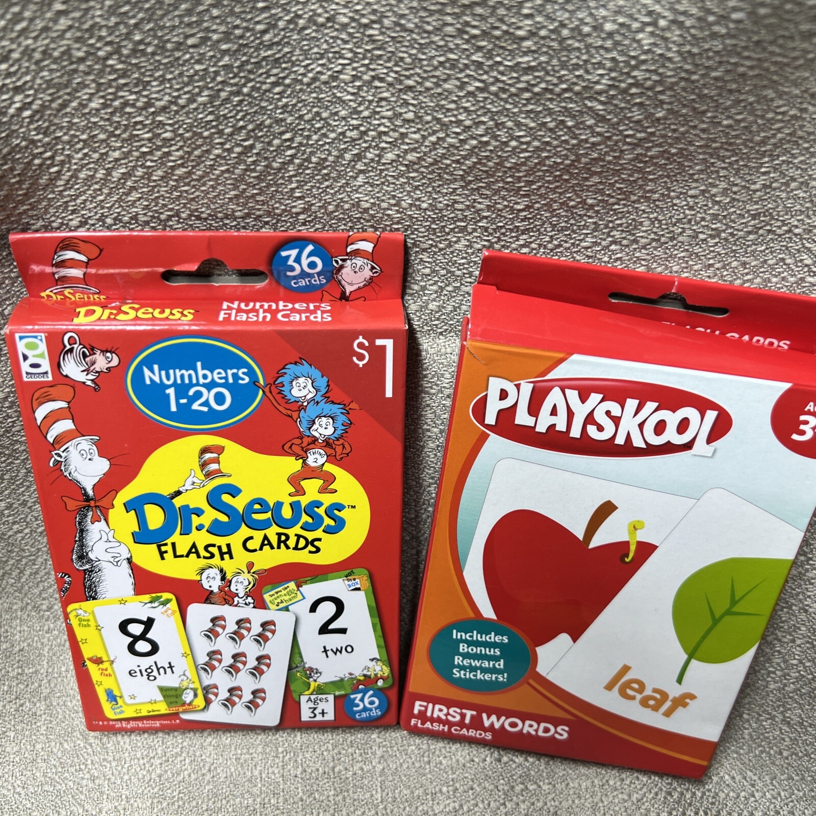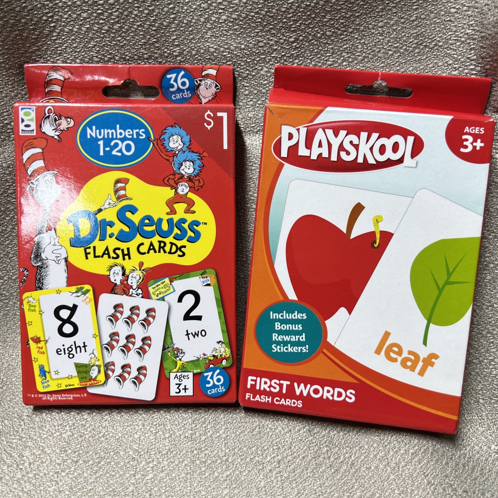 Dr. Seuss Flash Cards 36 Cards/Box Playskool First Words Lot Of 2