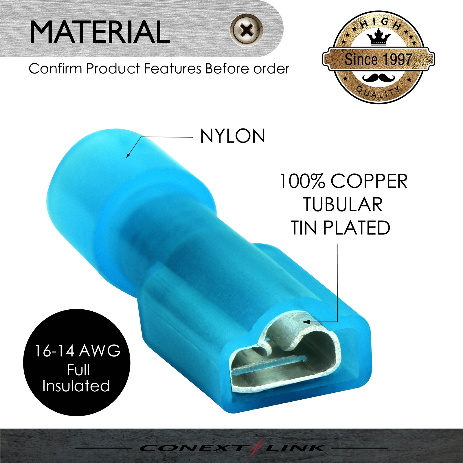 100 Nylon Female Quick Disconnect Terminal 16-14 AWG Blue 0.187 Full Insulated