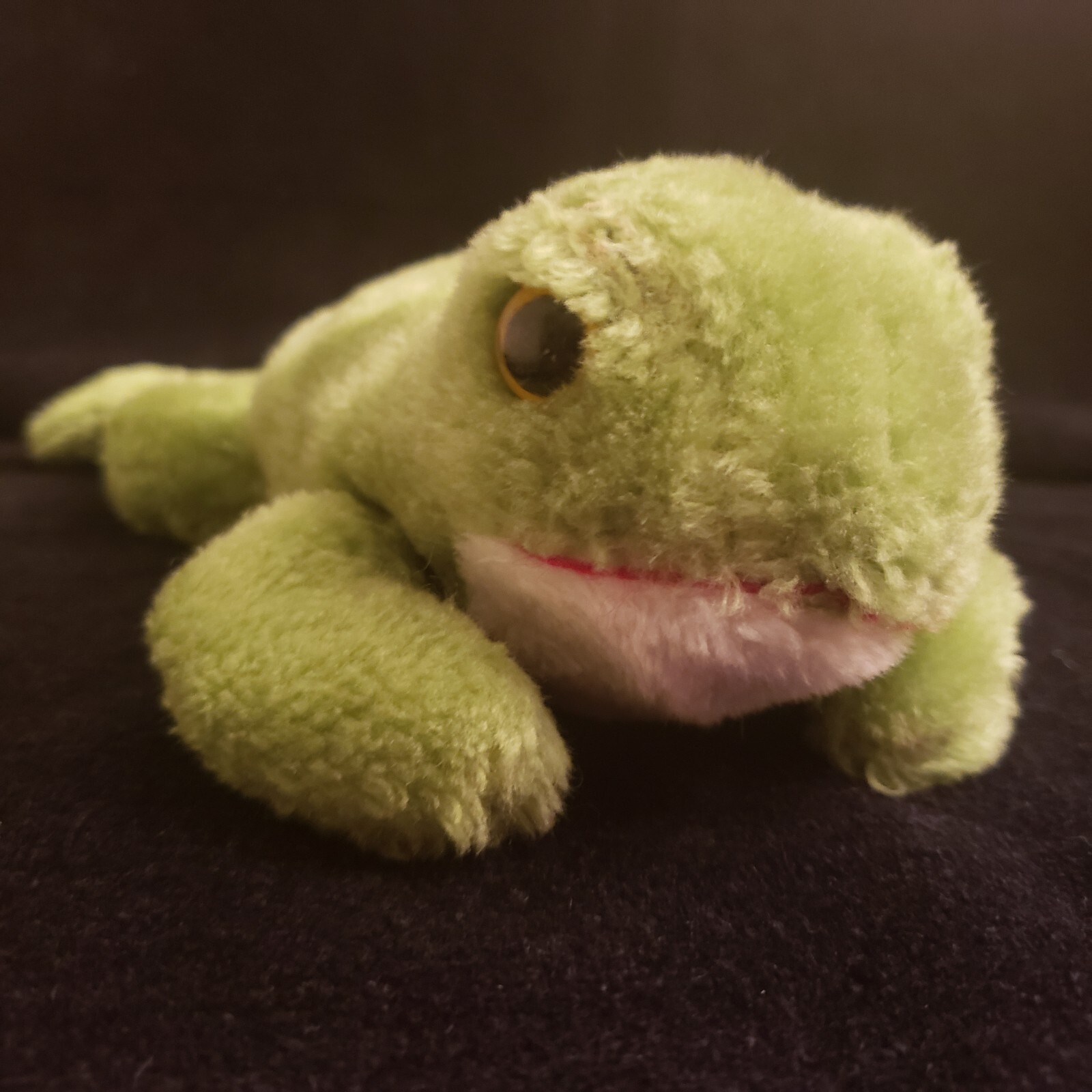 как выглядит R.DAKIN Plush Green Frog Yellow Eyes 1976 Stuffed Animal VINTAGE фото