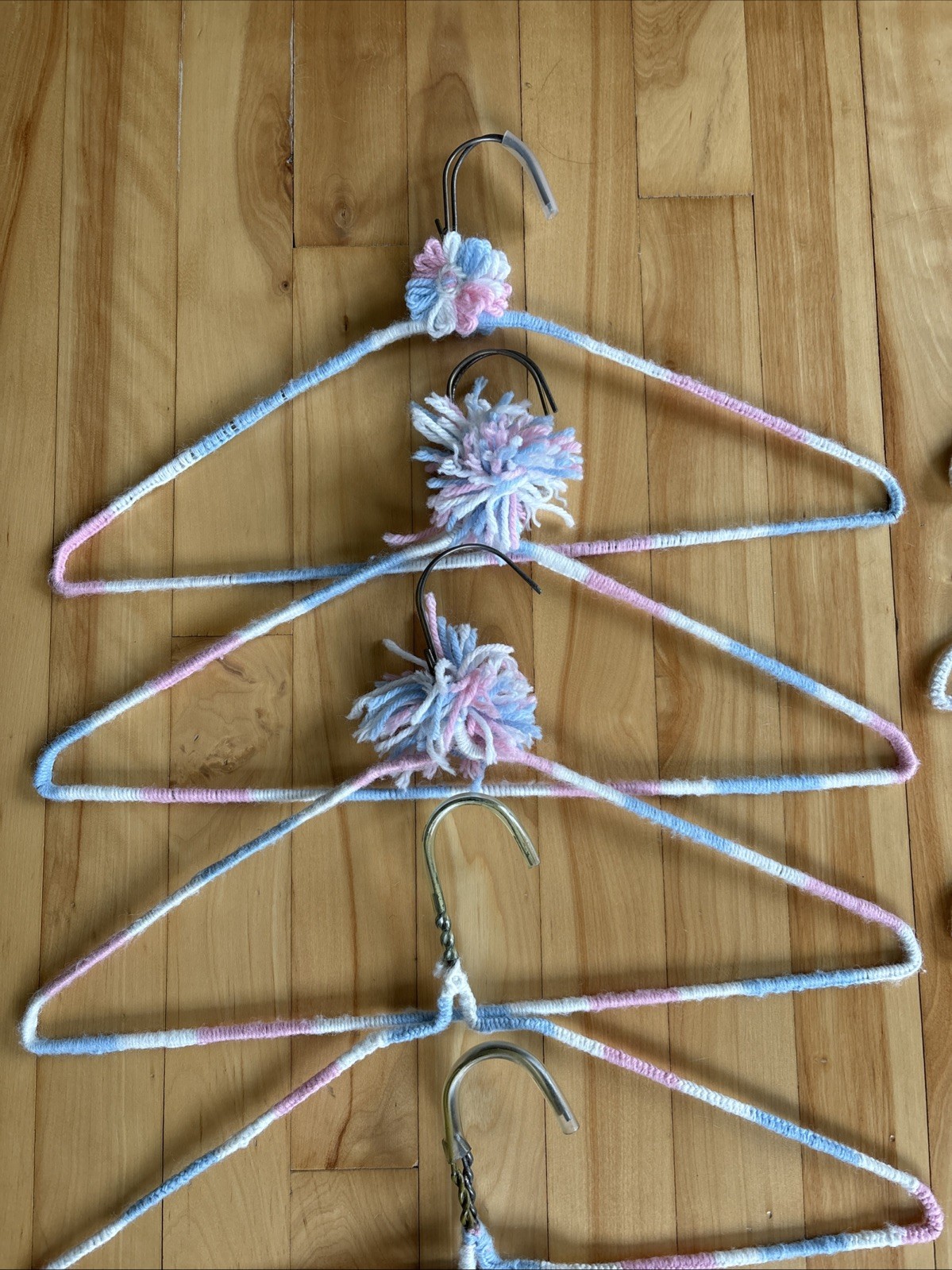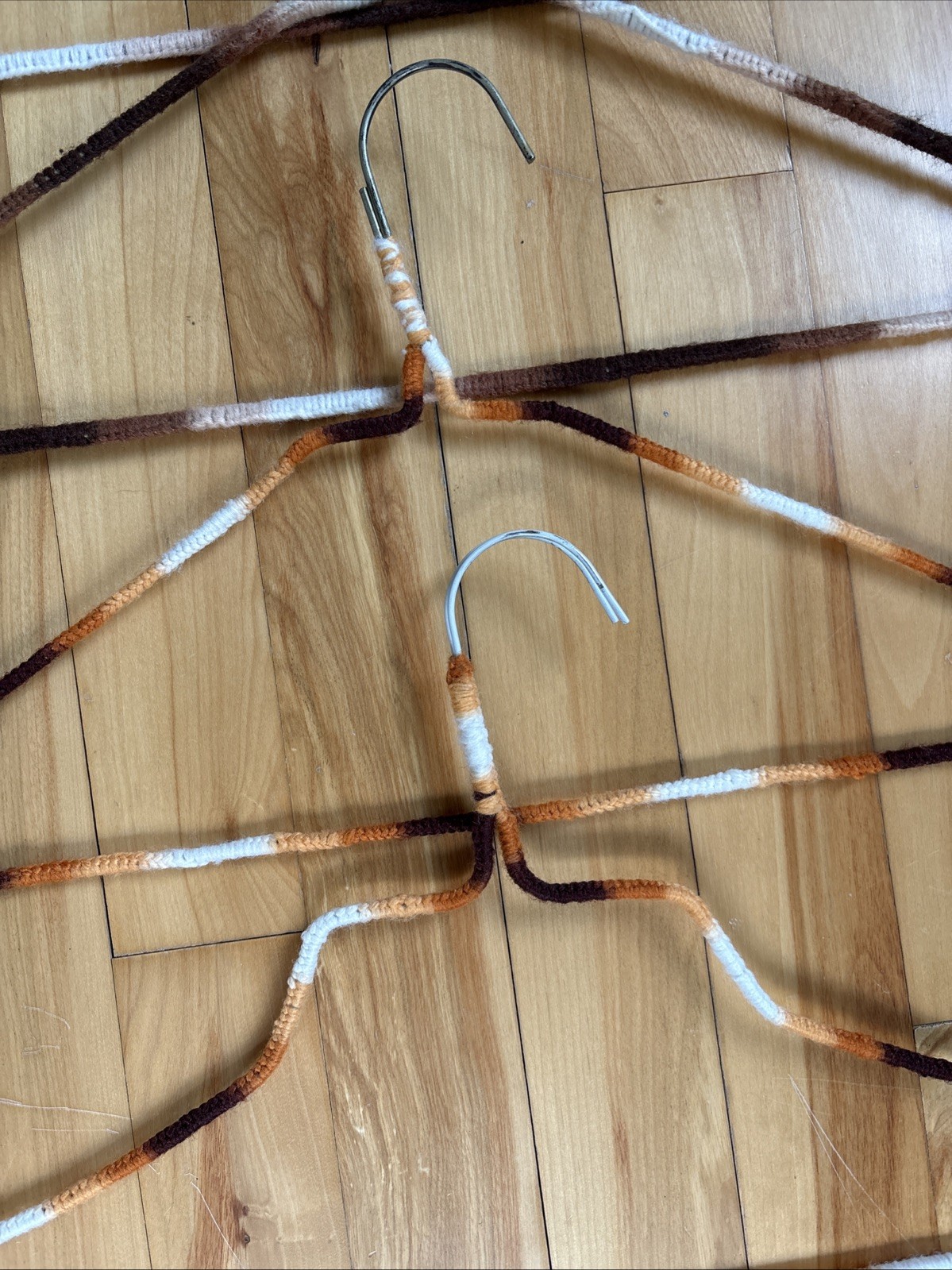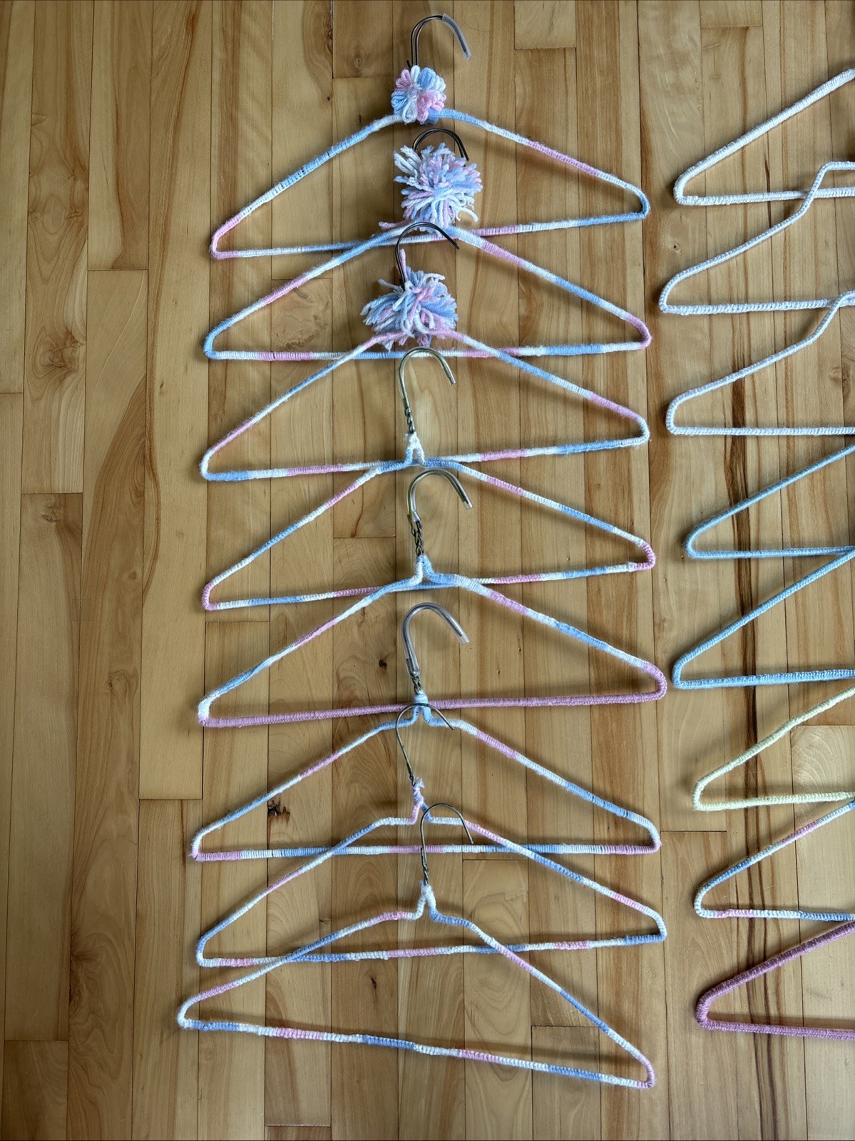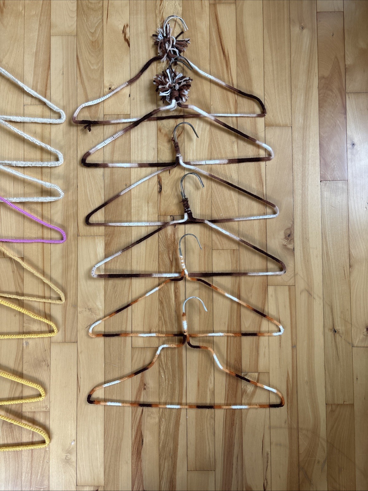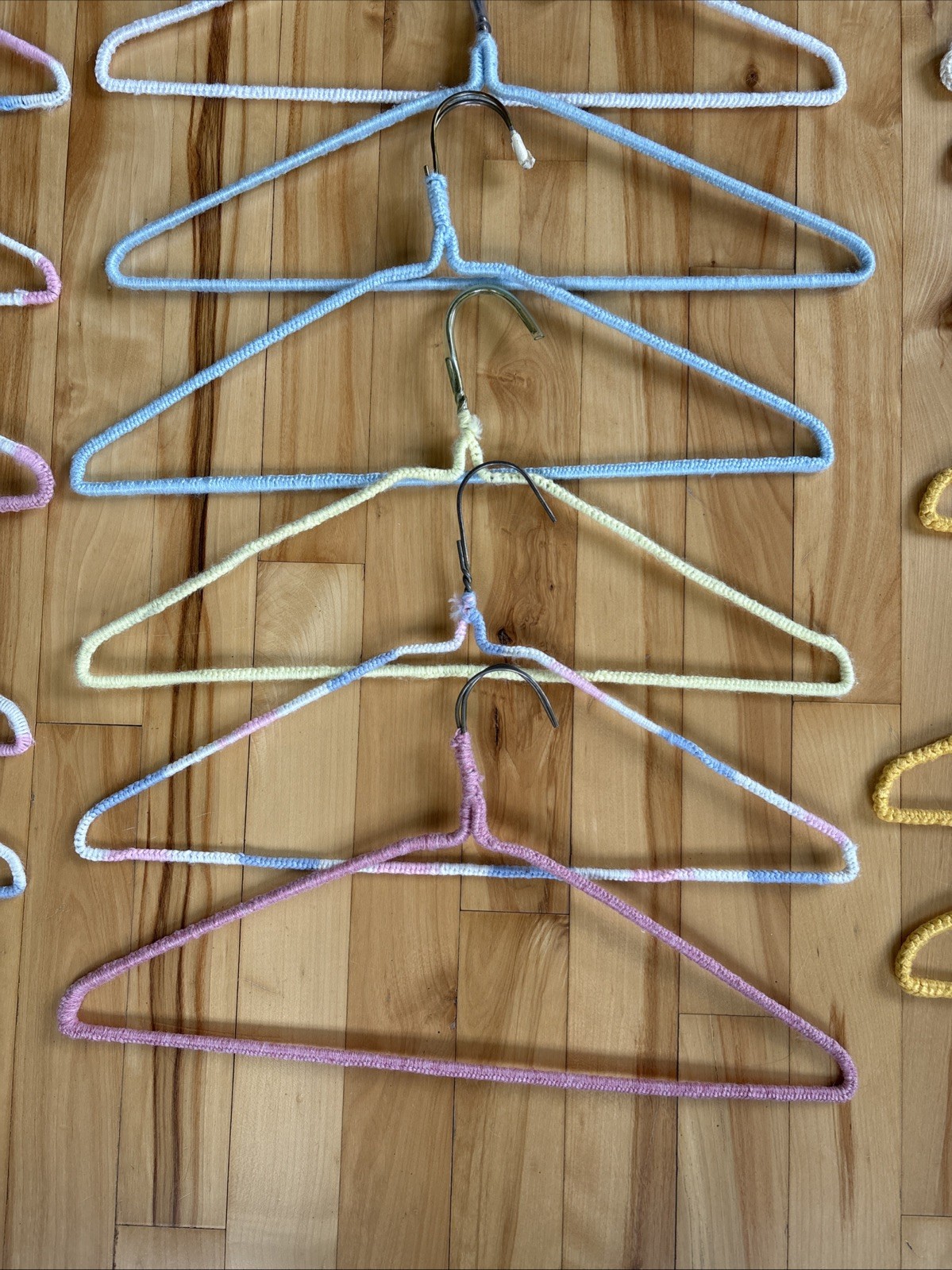 как выглядит 30 Vintage Handmade Crochet Clothes Hangers Colorful Yarn Covered Cottage Core фото