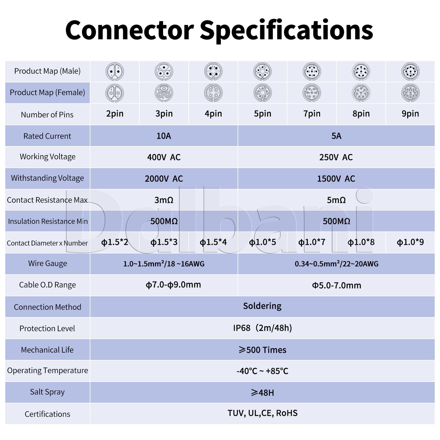 Wire Gauge: 0.34~0.75mm, 22~20 AWG