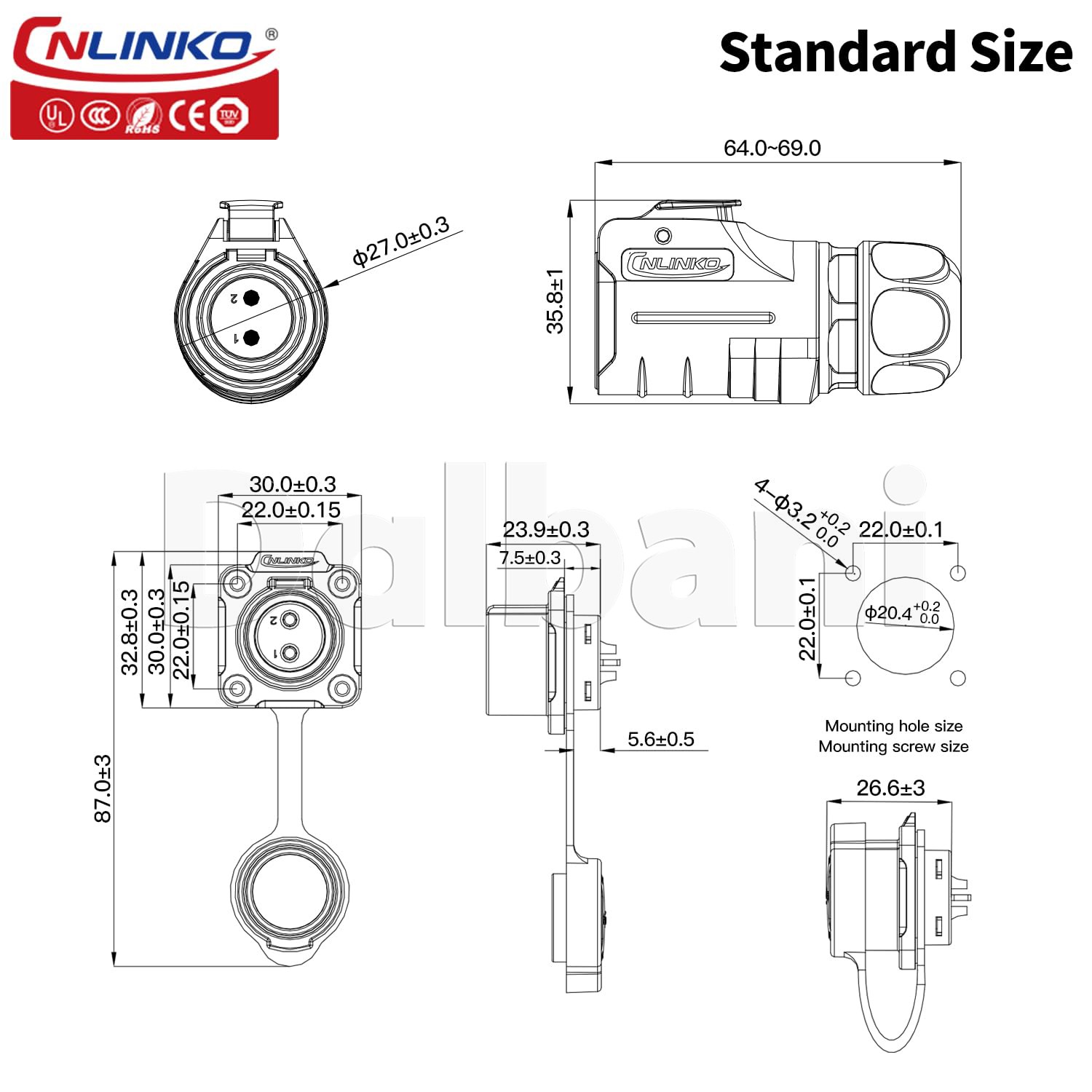 Wire Gauge: 2.5~4.0mm, 2/14~12 AWG