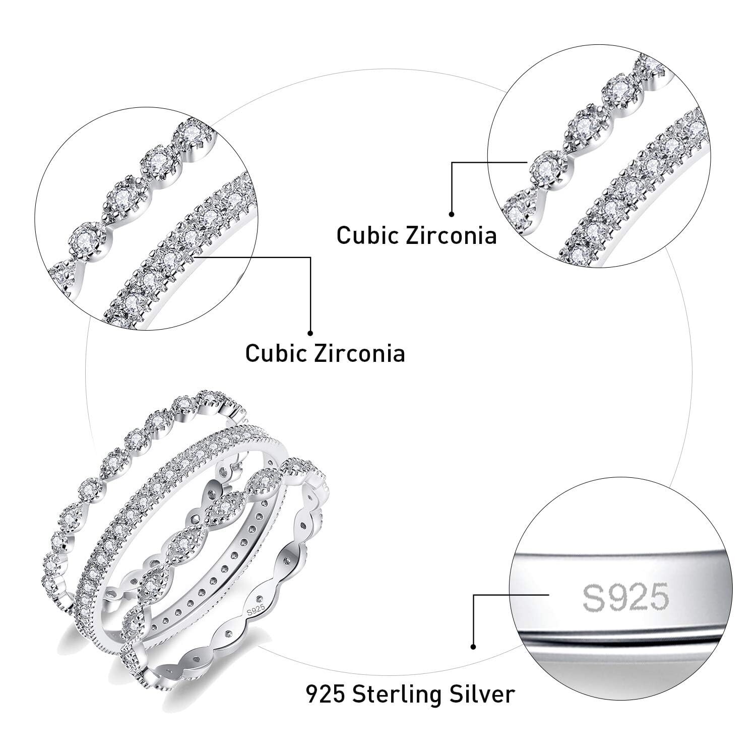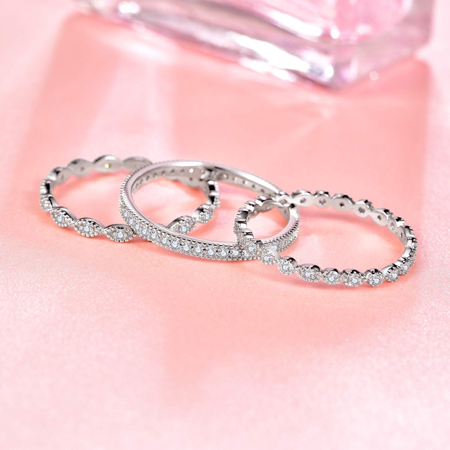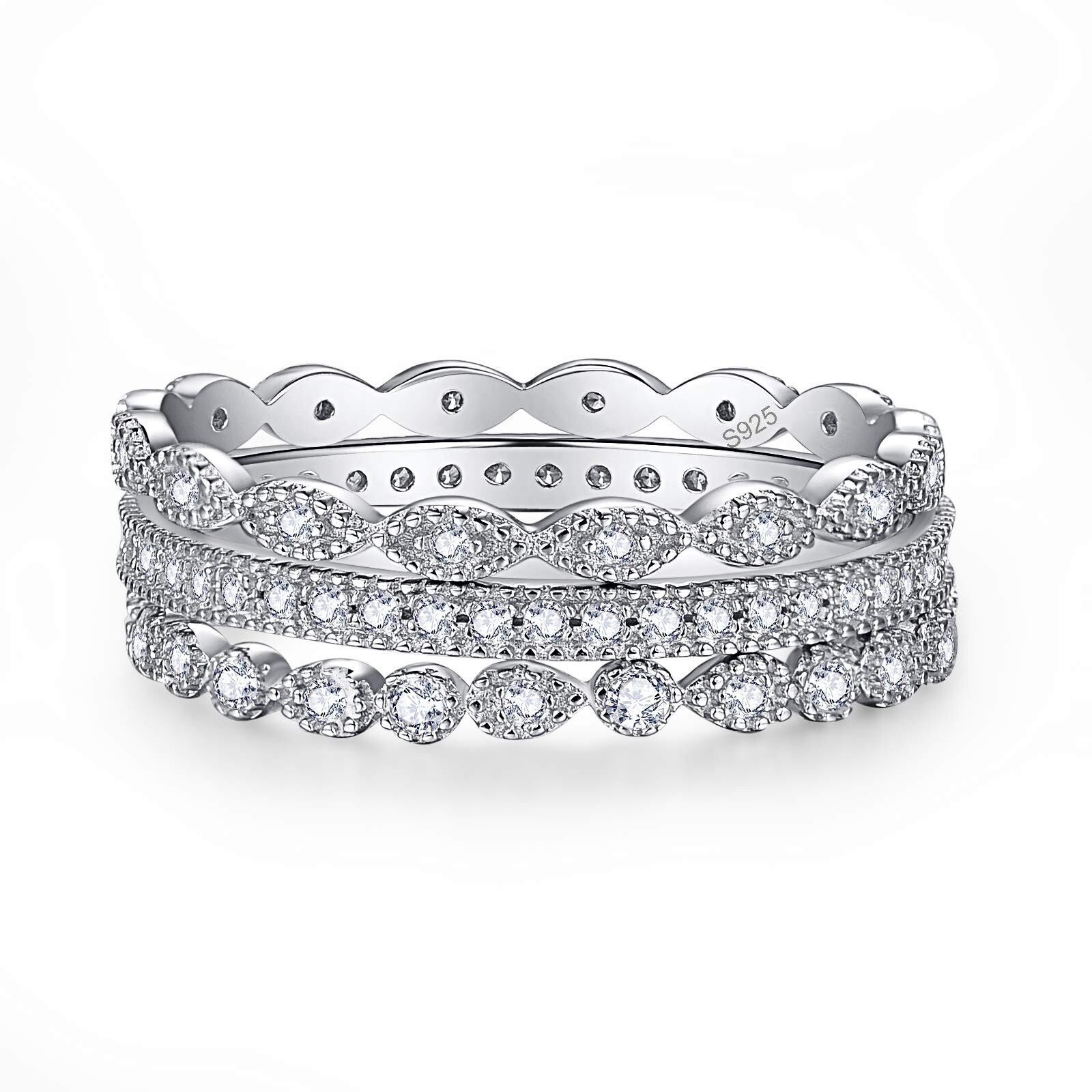 3 PCS 925 Sterling Silver Stackable Engagement Rings Set Cubic Zirconia Etern...