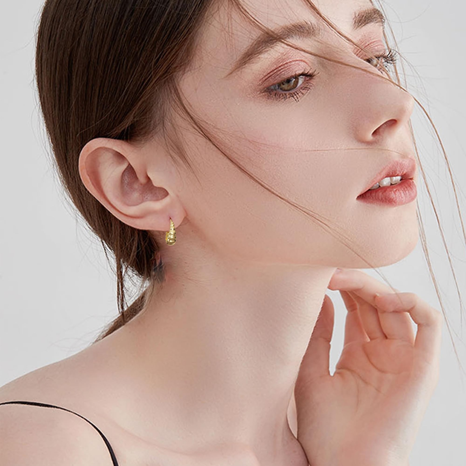 как выглядит 9 Pairs Small Gold Huggie Hoop Earrings Set for Women, 14K Real Gold Plated H... фото