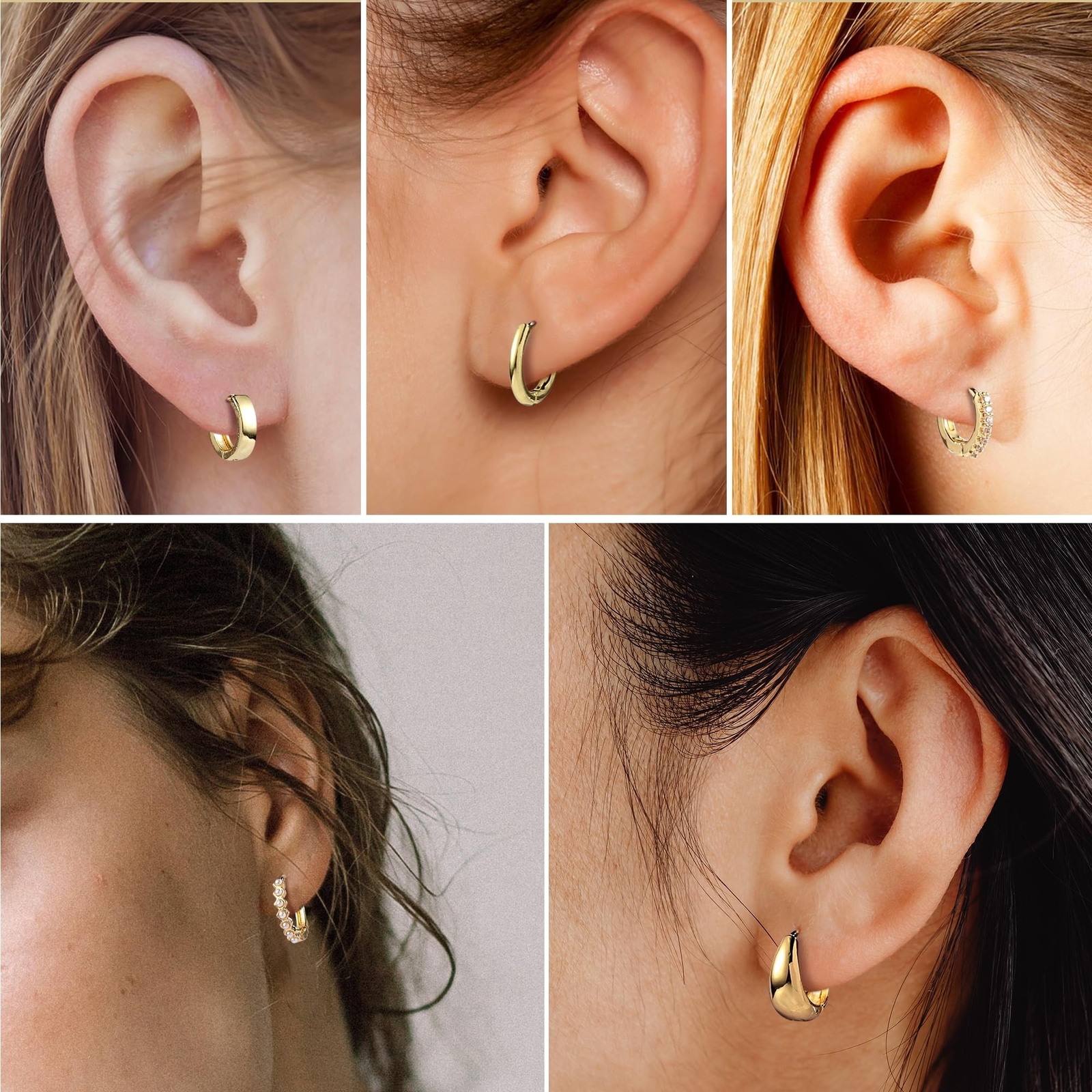 9 Pairs Small Gold Huggie Hoop Earrings Set for Women, 14K Real Gold Plated H...