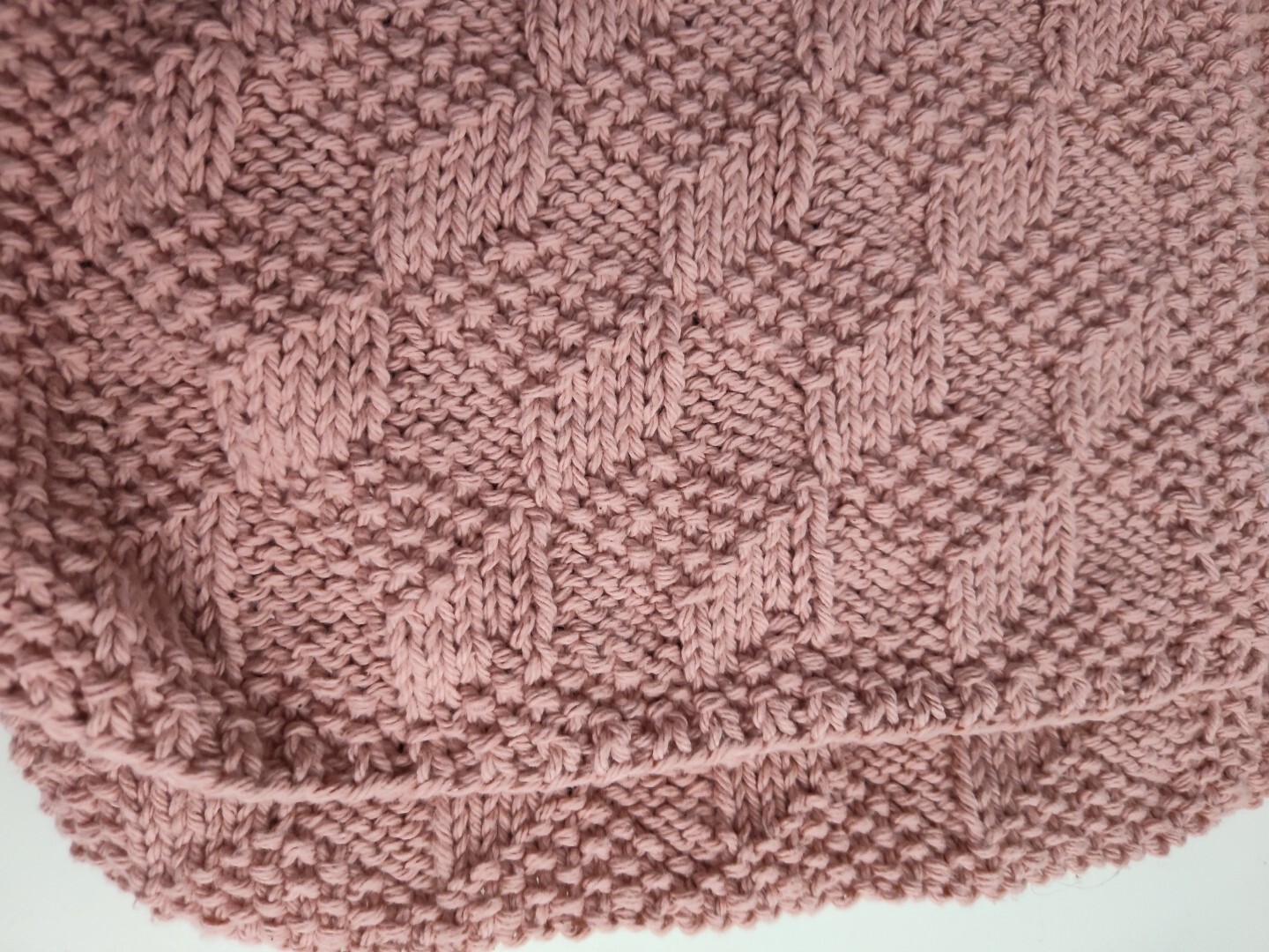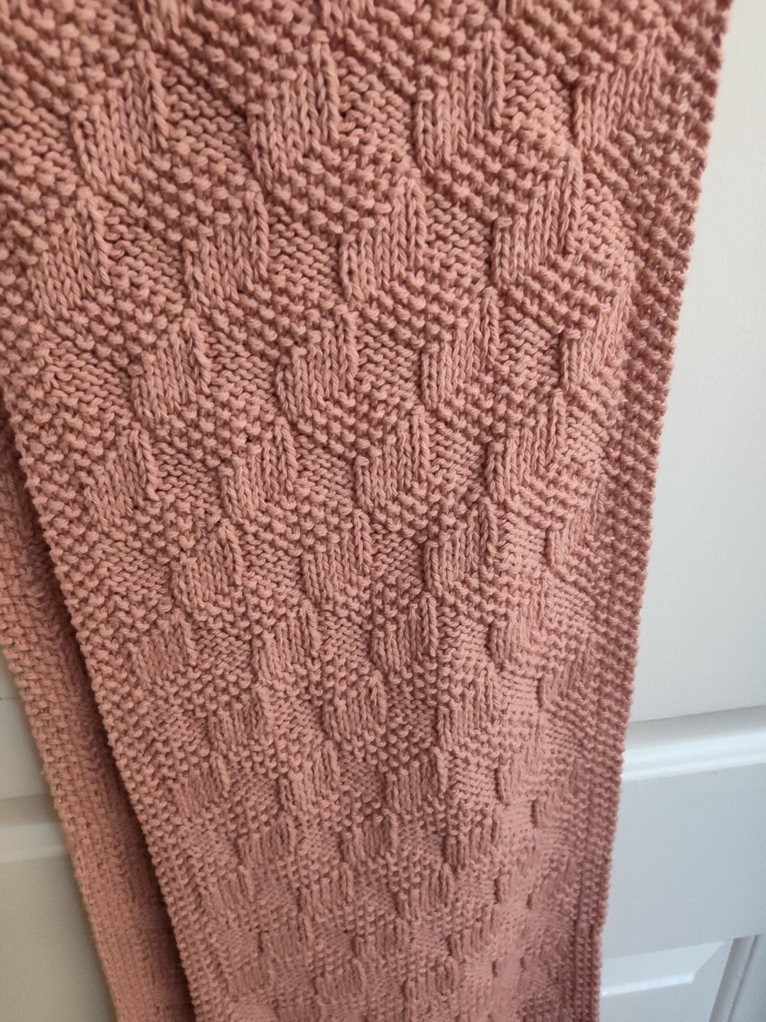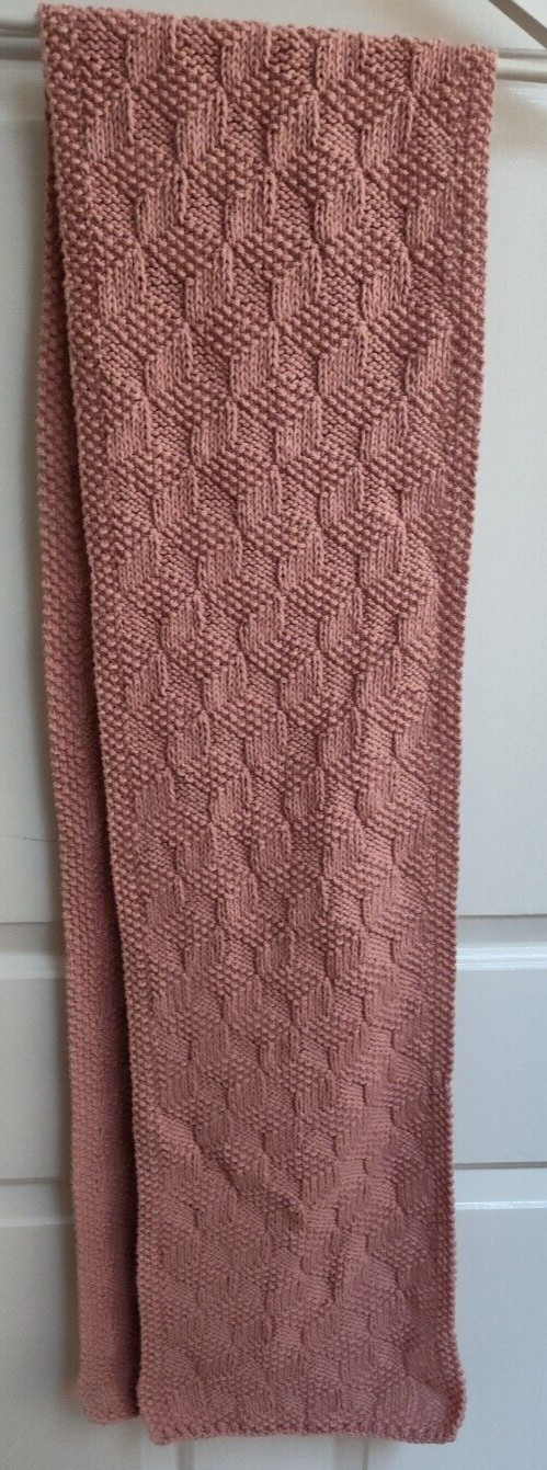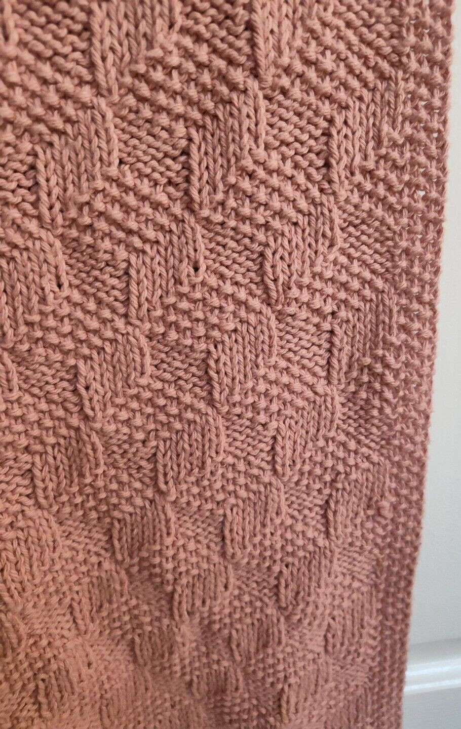 Hand Knit Cotton Scarf Wrap Dusty Coral Pinkish Chunky Knit Pattern
