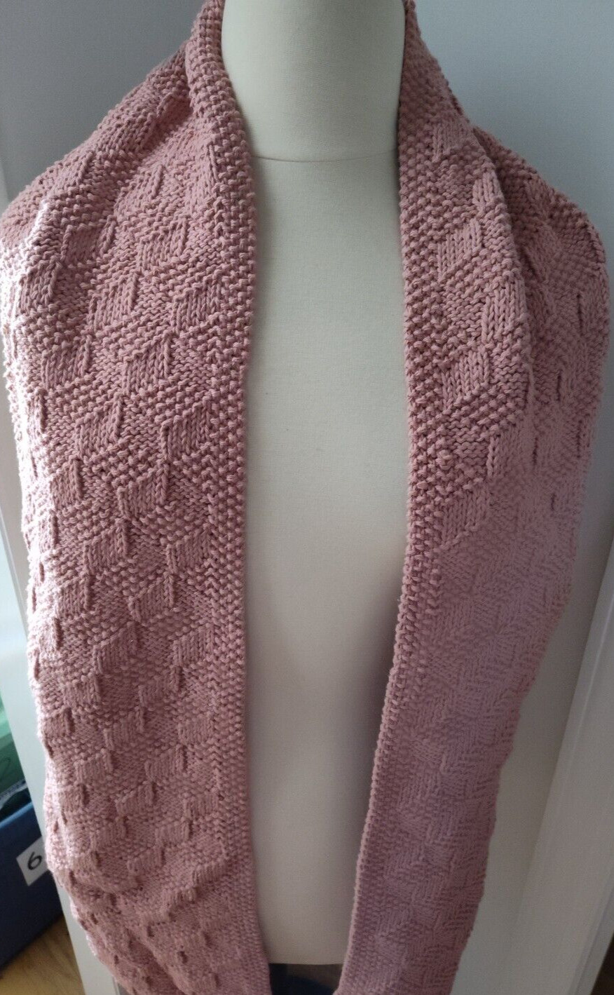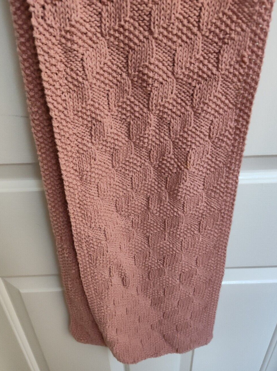 как выглядит Hand Knit Cotton Scarf Wrap Dusty Coral Pinkish Chunky Knit Pattern фото