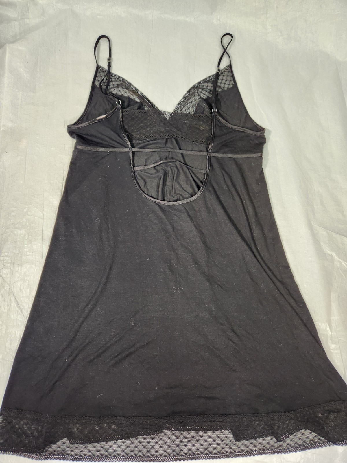 как выглядит Victorias Secret Dot Lace Dress Plunge Strappy Cutout Back Slip Black Large L Pj фото