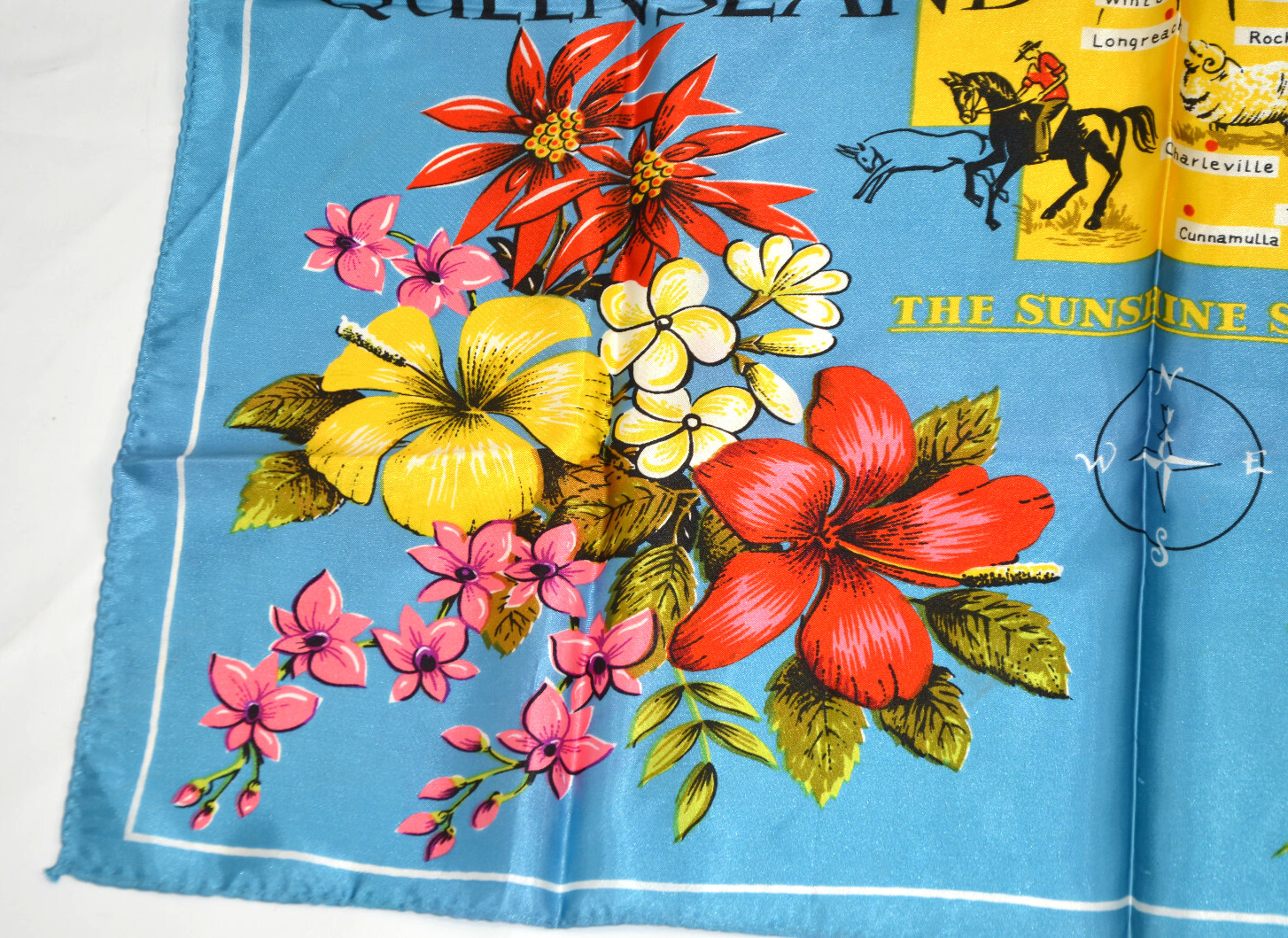 Queensland Australia Souvenir Scarf Map Vintage Leil Great Barrier Reef Satin