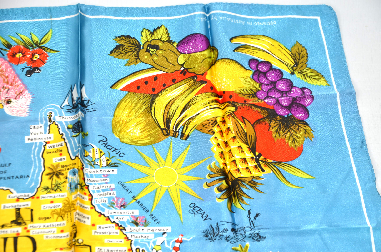 как выглядит Queensland Australia Souvenir Scarf Map Vintage Leil Great Barrier Reef Satin фото