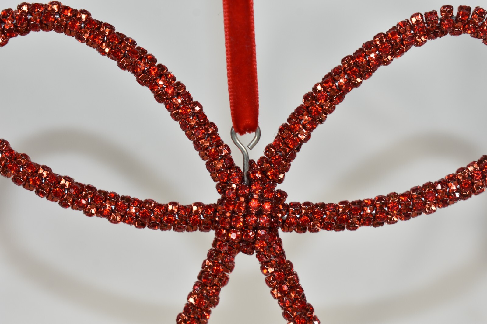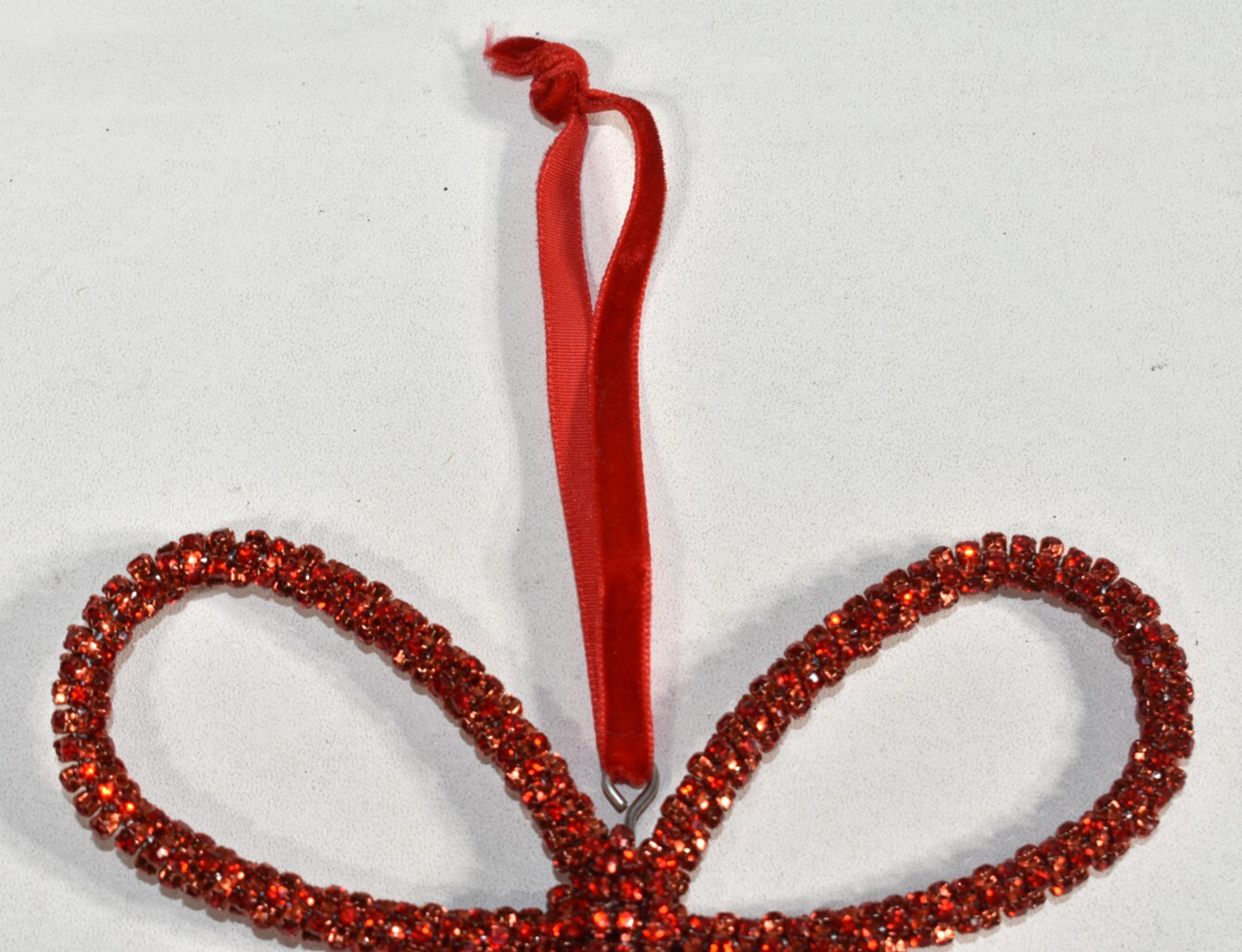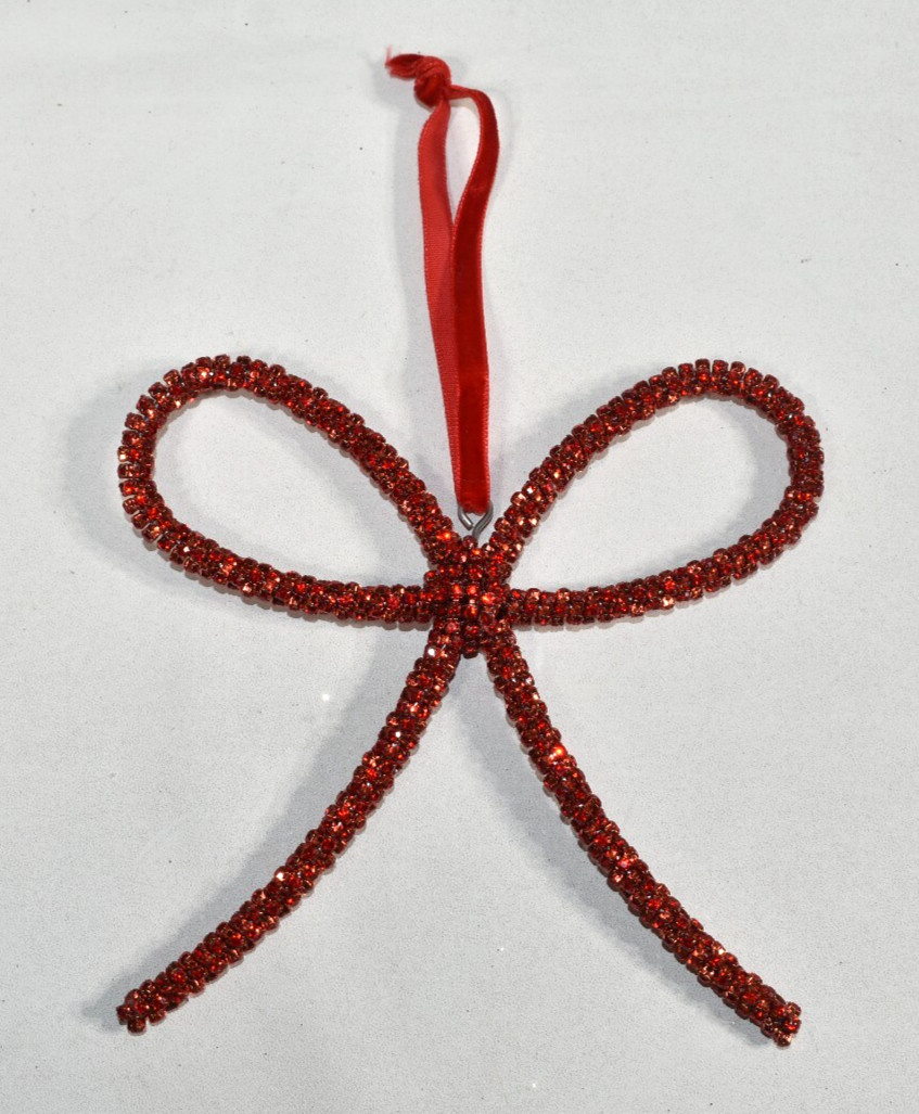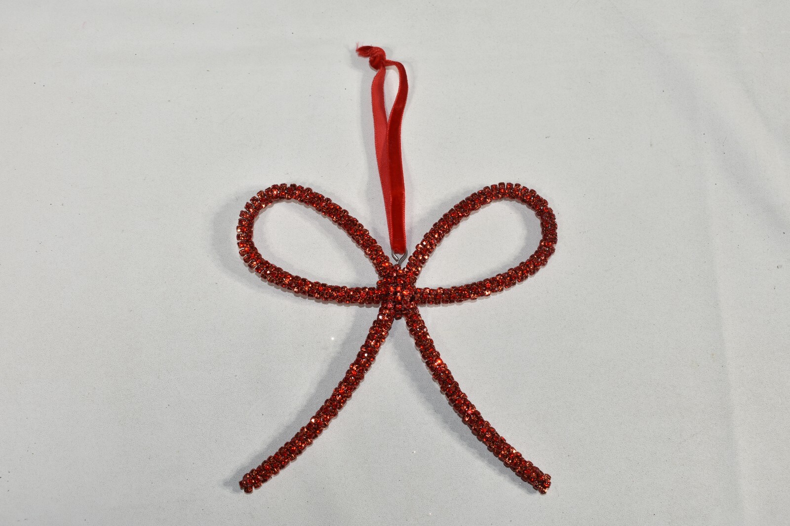 Red Rhinestone Gem Wrapped Bow 5-3/8 Christmas Ornament Velvet Hanging Loop