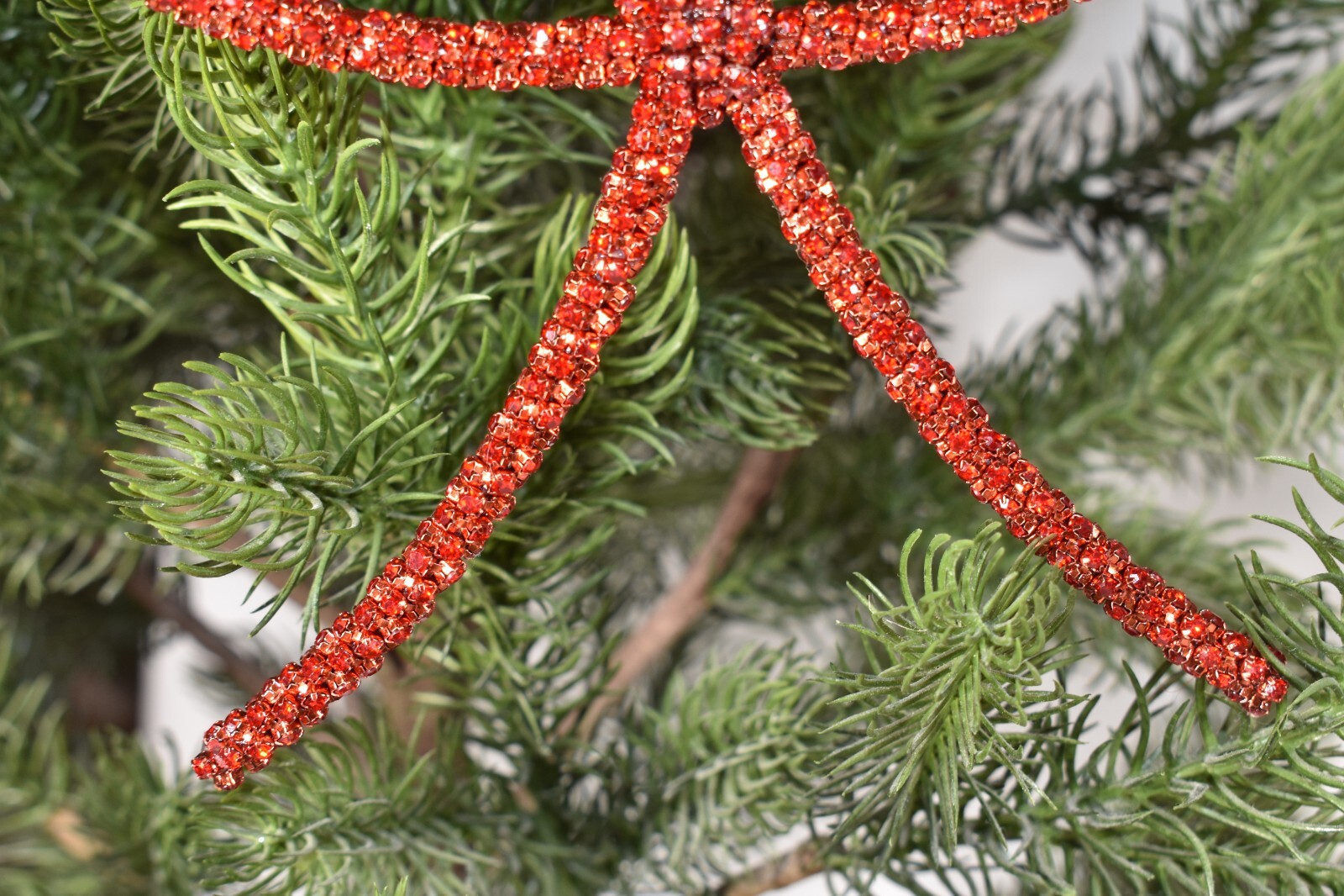 • Red Rhinestone Gem Wrapped Bow 5-3/8" Christmas Ornament Velvet Hanging Loop